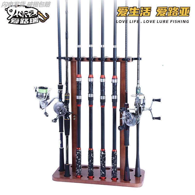 📚 展示架家用置物立式固定路亚竿架子垂钓用品木质放置架鱼竿收纳架