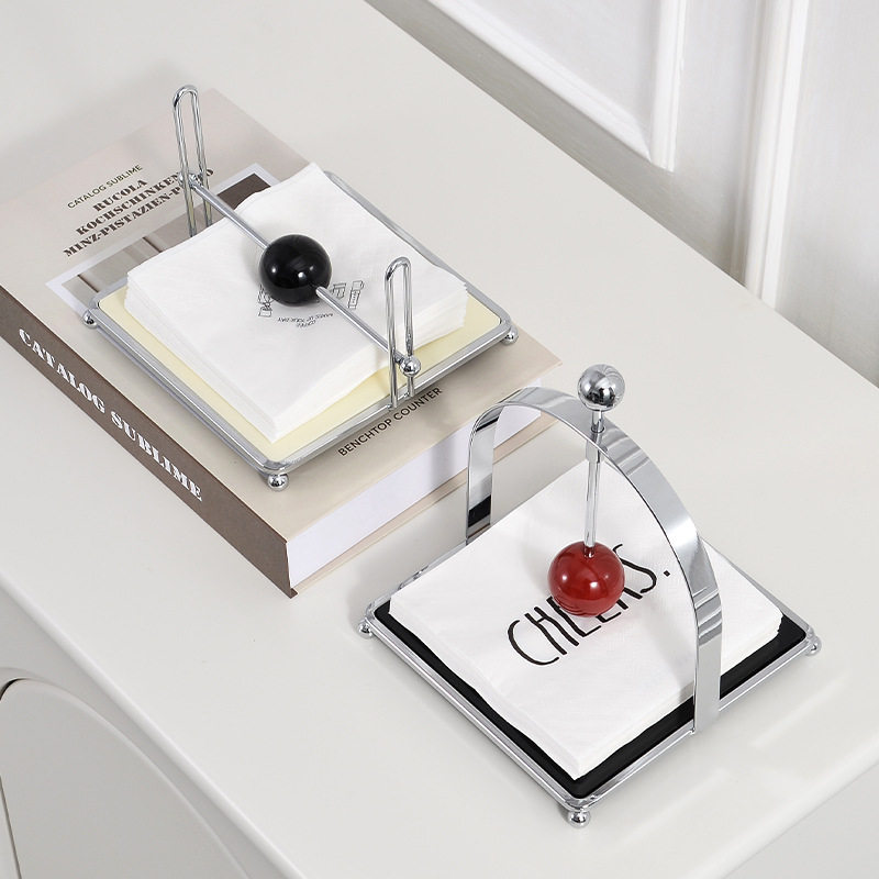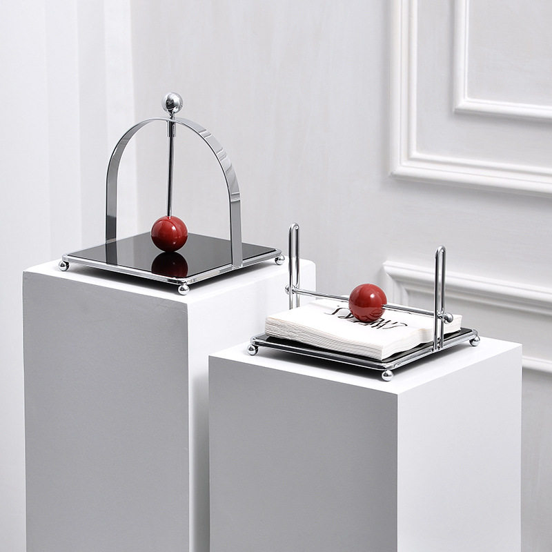 📚 带球轻奢中古风银色纸巾架高级感方形餐巾纸压纸座餐厅酒店纸巾座