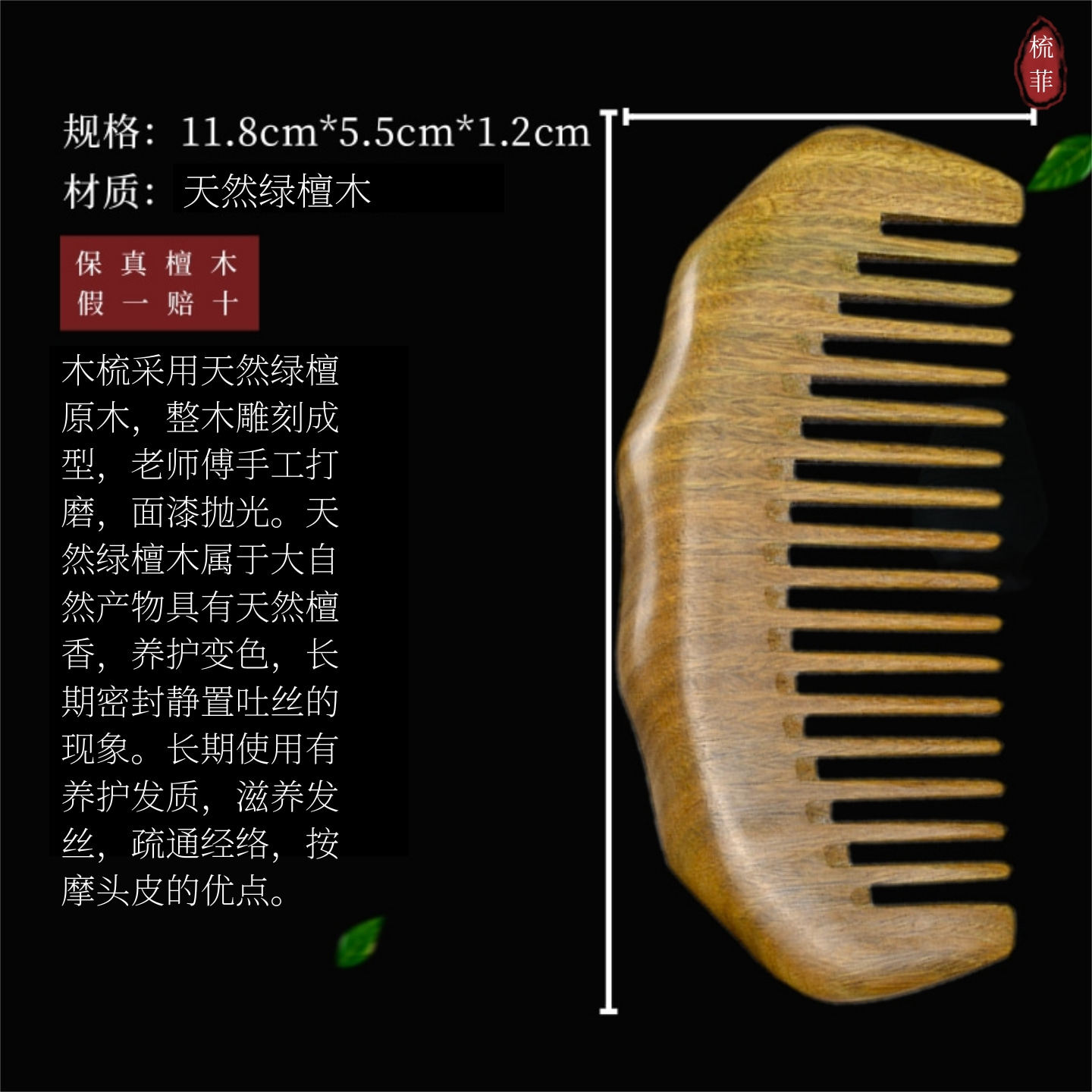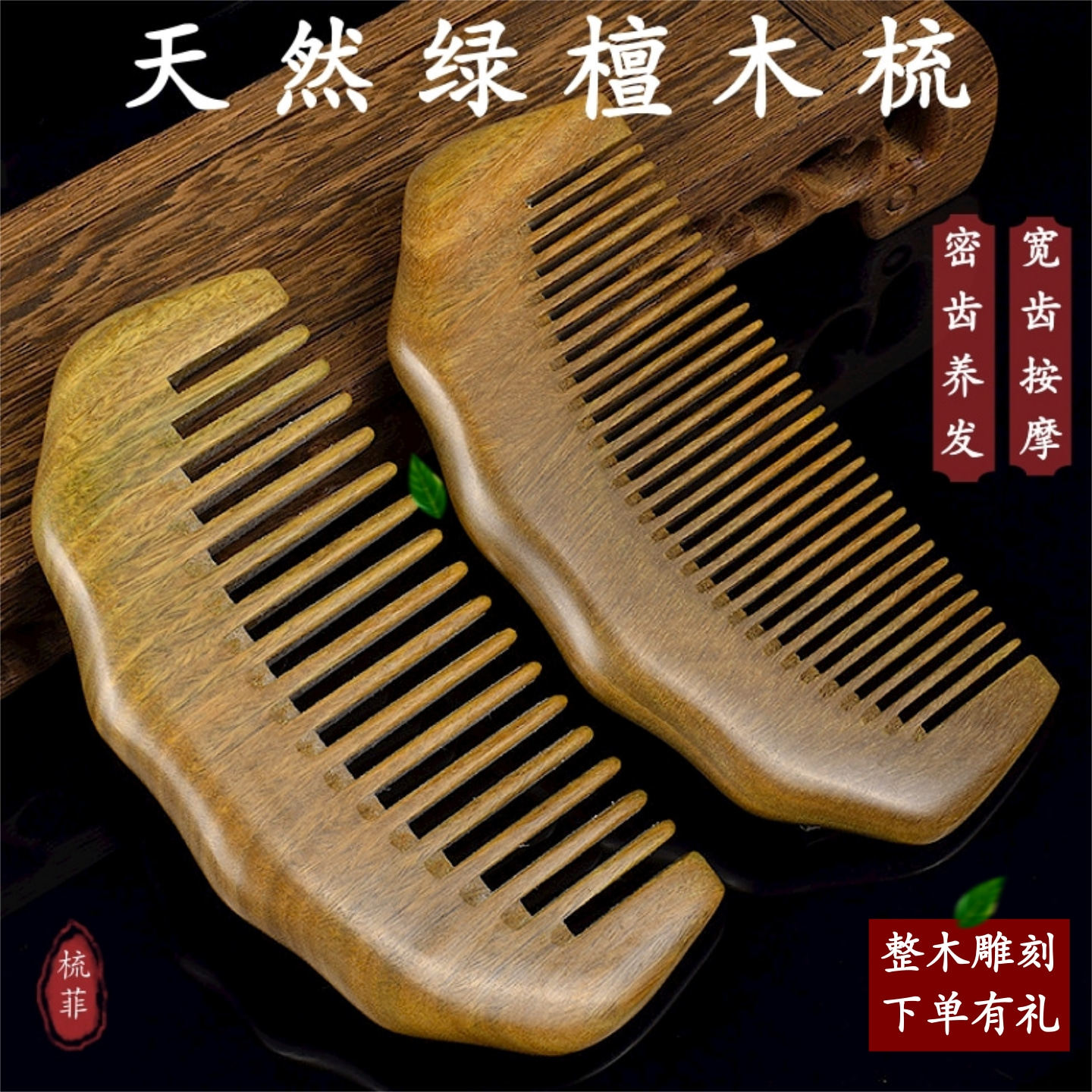 📚 天然绿檀木梳头皮经络按摩疏通女家用长发防脱便携养发静电檀木梳