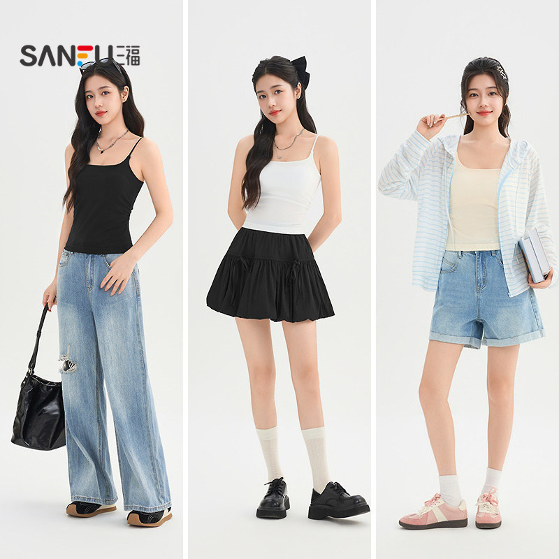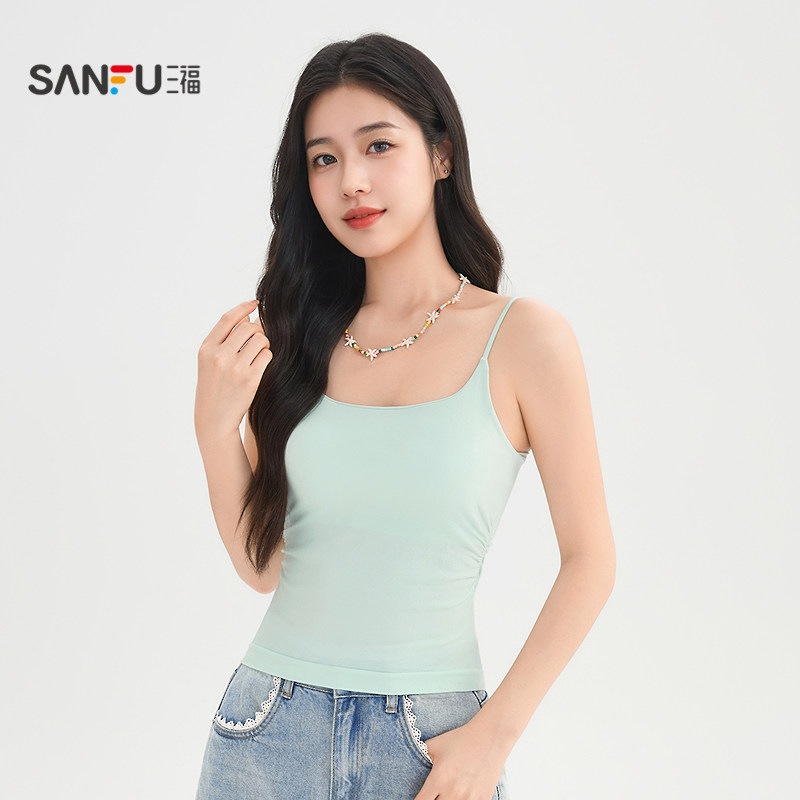 📚 三福带胸垫背心女2026新款夏季时尚修身短款内搭吊带无袖上衣女装