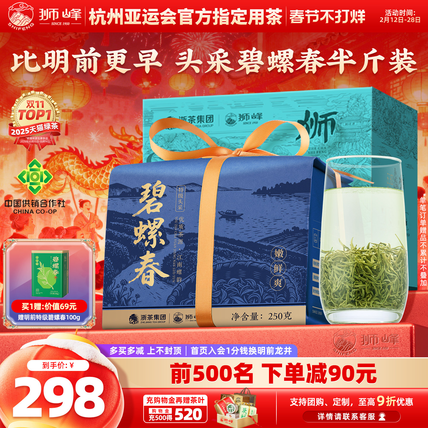 📚 狮峰牌碧螺春2025新茶明前特级头采春绿茶叶250g自己喝官方旗舰店