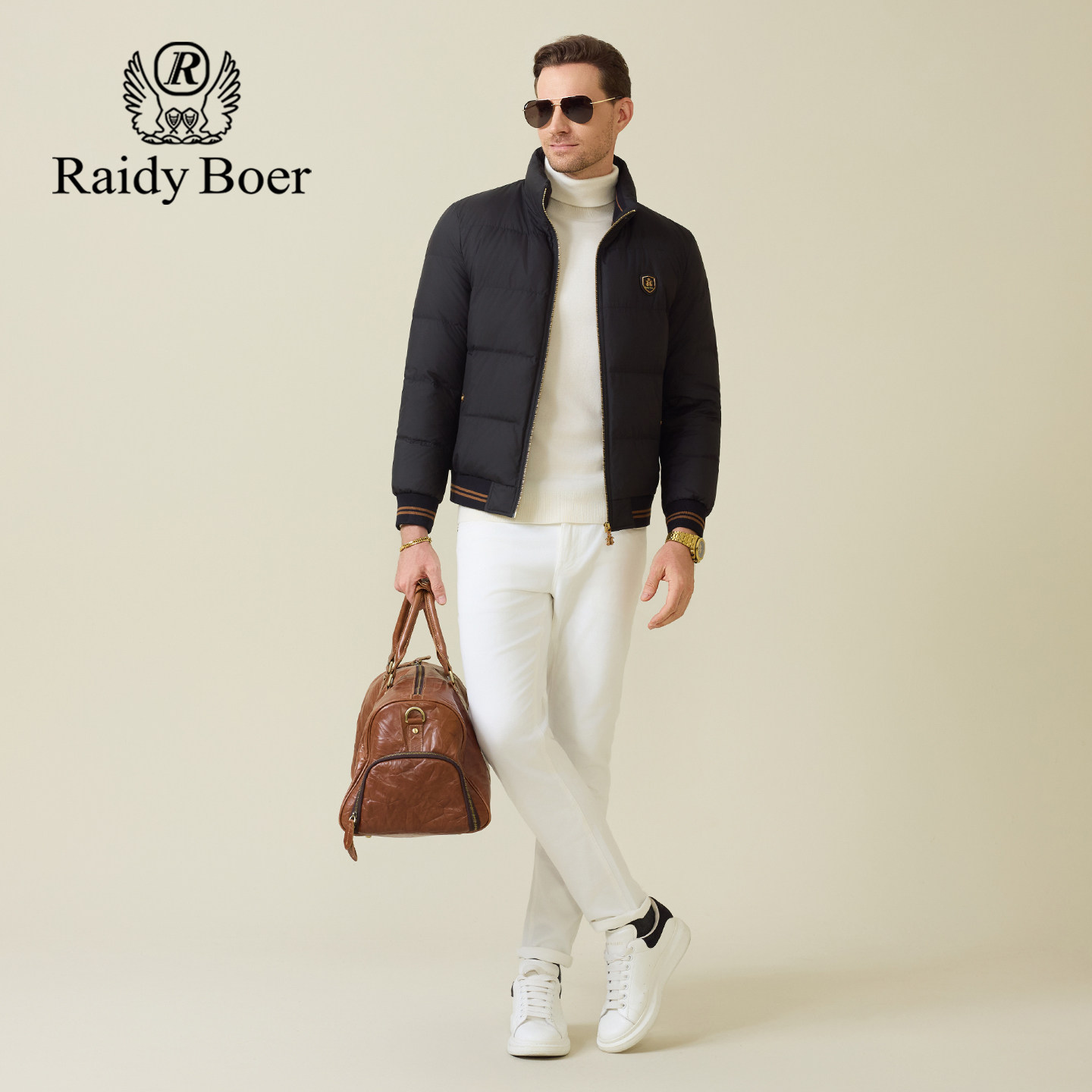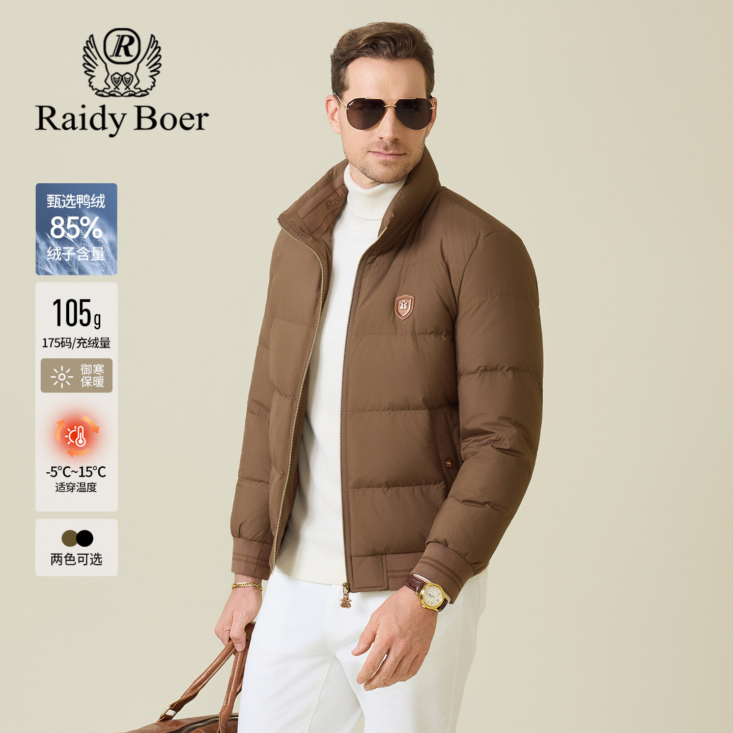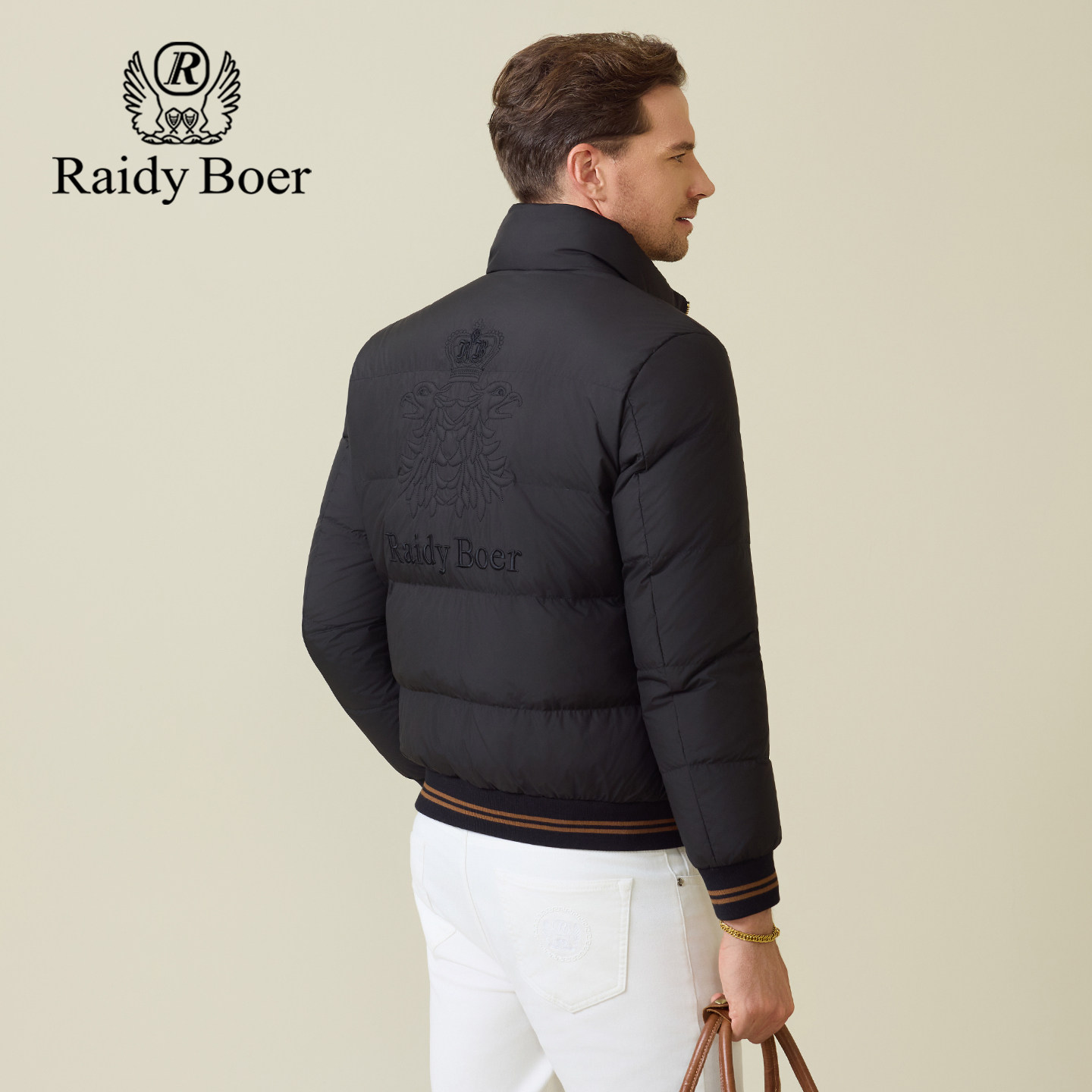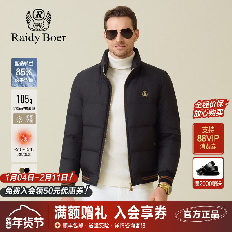 📚 雷迪波尔男装羽绒服2025冬季新款立领休闲后背刺绣鸭绒保暖外套男