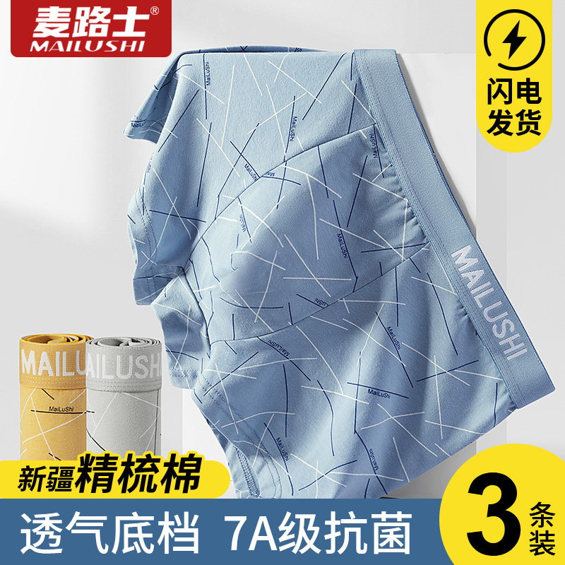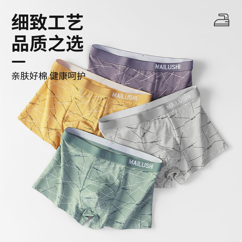 📚 男士内裤男款夏季纯棉四角大码底裤男生全棉透气裤衩男式平角裤头