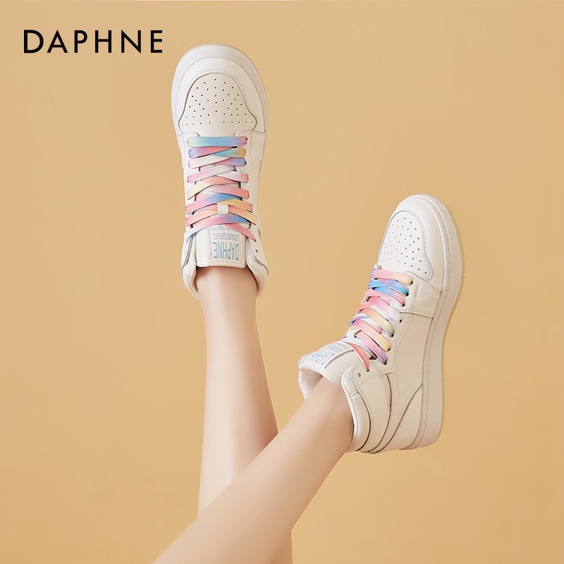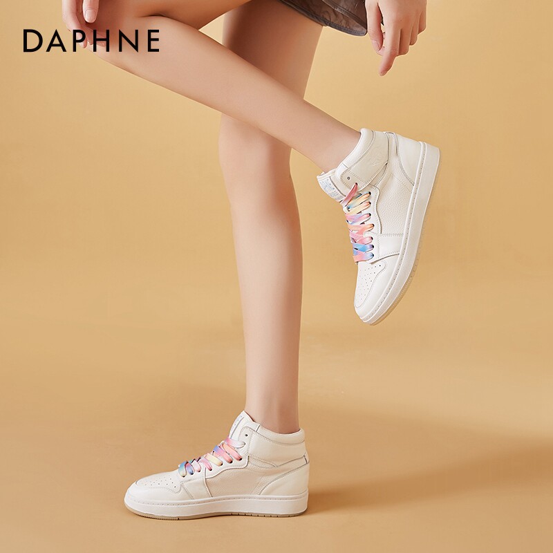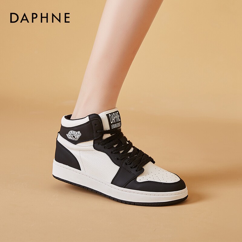 📚 达芙妮板鞋女高帮鞋2026新款春秋真皮熊猫鞋子百搭运动休闲aj女鞋