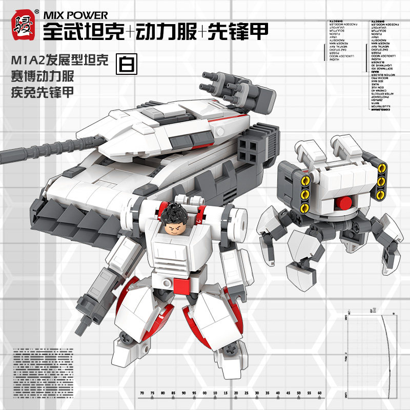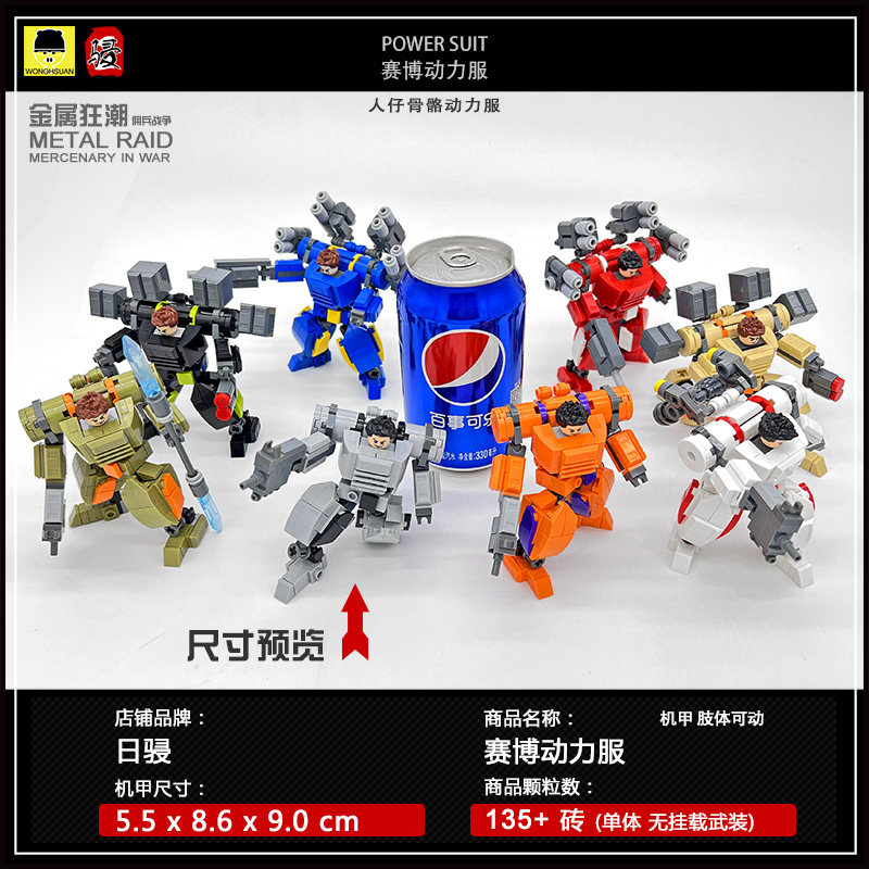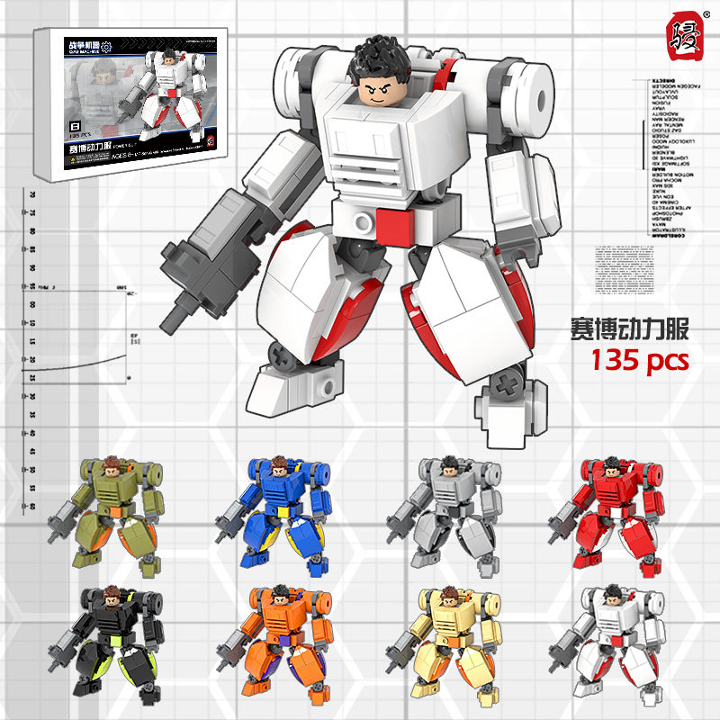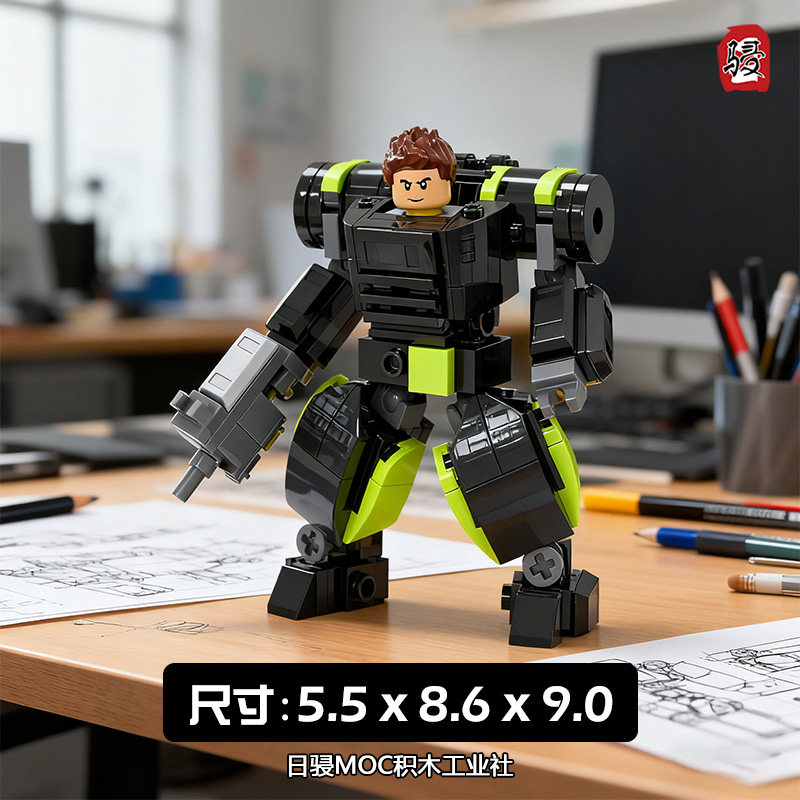 📚 日骎颗粒拼装积木MOC科幻军事赛博人仔骨骼动力服机甲玩具礼物