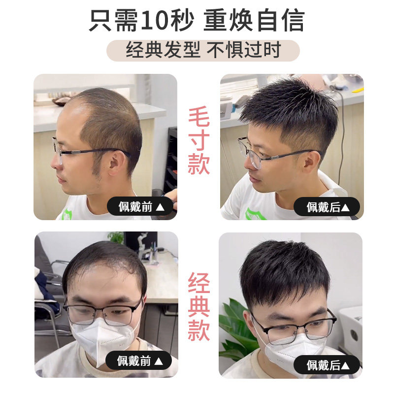📚 假发男生发片男士无痕隐形全真发短发型毛寸自然头顶补发片光头