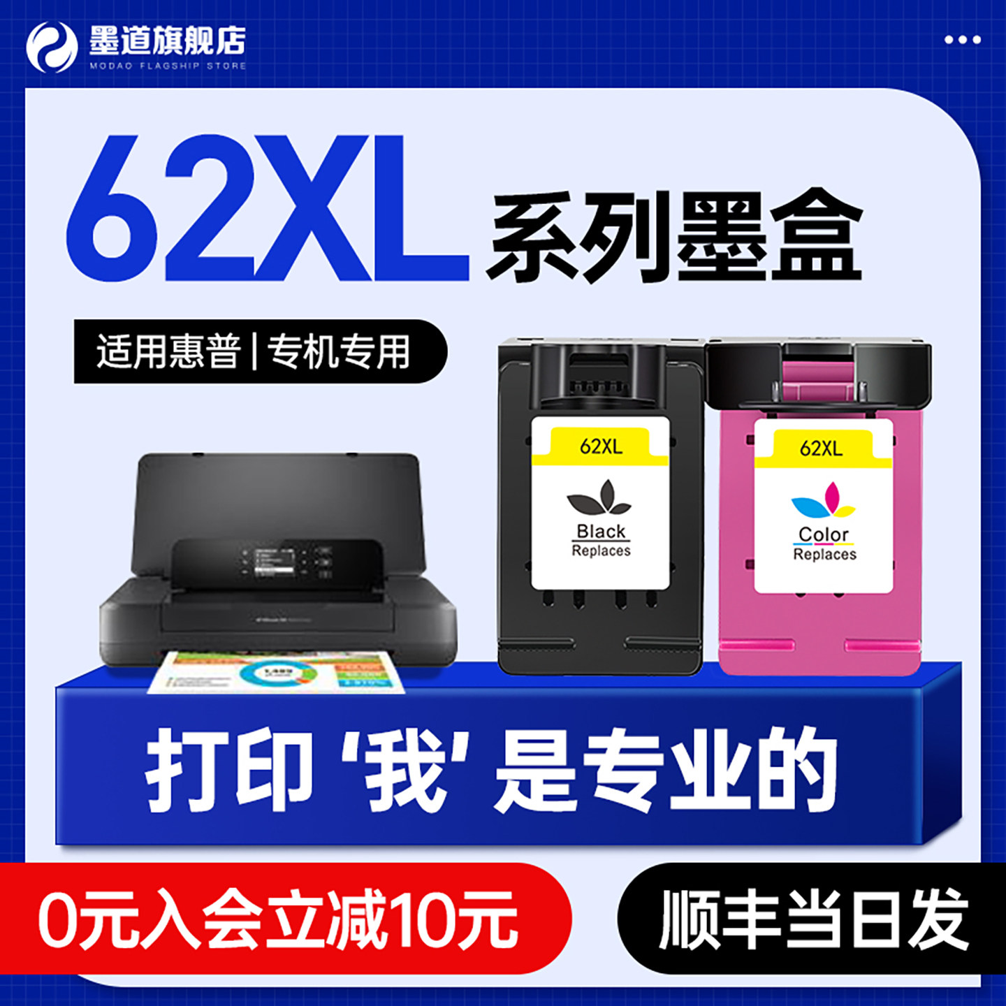 📚 墨道原装 适用惠普62墨盒HP62xl墨盒惠普officejet200 258 7640 5740 打印机大容量可加墨