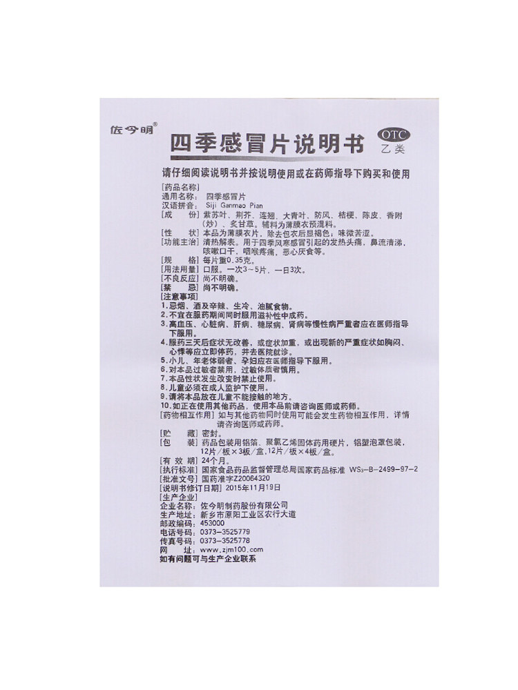 📚 佐今明 四季感冒片 0.35g*36片/盒