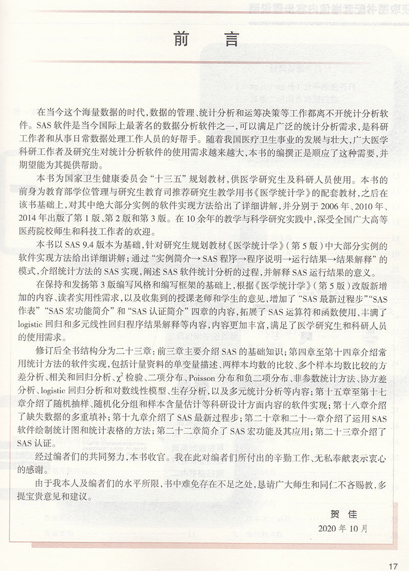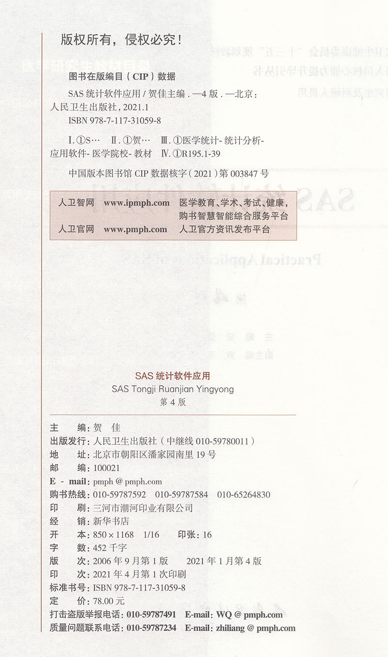 📚 现货SAS统计软件应用第4版健康委员会十三五规划教材科研人员核心能力提升导引丛书科研人员研究生临床医学教材9787117310598