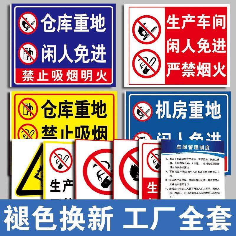 📚 进入厂区禁止吸烟标识牌铝板仓库重地严禁菸火警示牌违者罚款提示牌工厂车间严禁明火告示牌温馨标签贴纸定制
