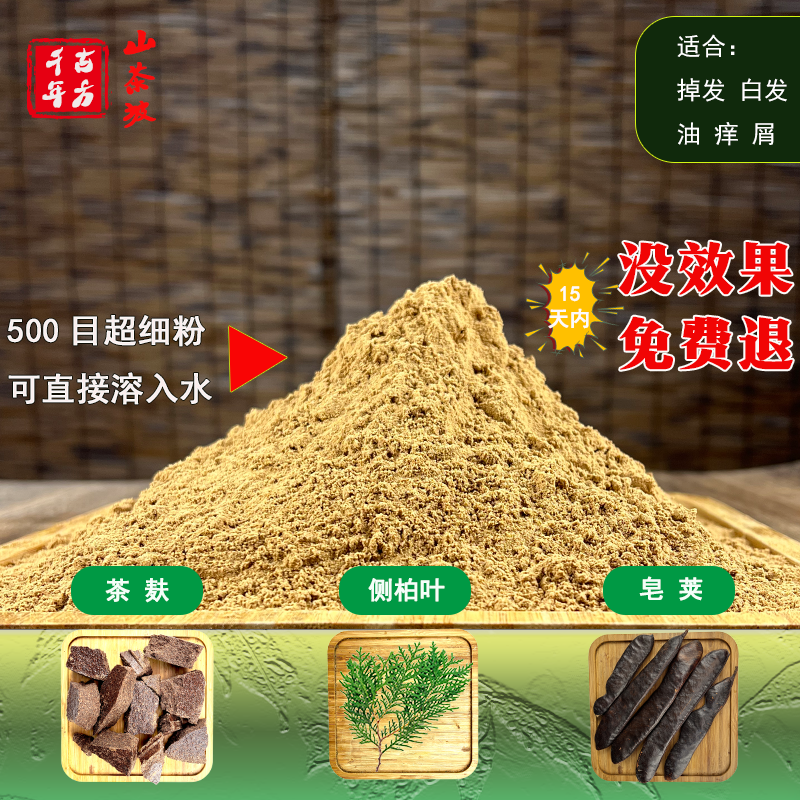 📚 超细茶麸侧柏叶皂荚粉天然茶枯侧柏叶粉洗头去屑止痒防脱白发茶枯