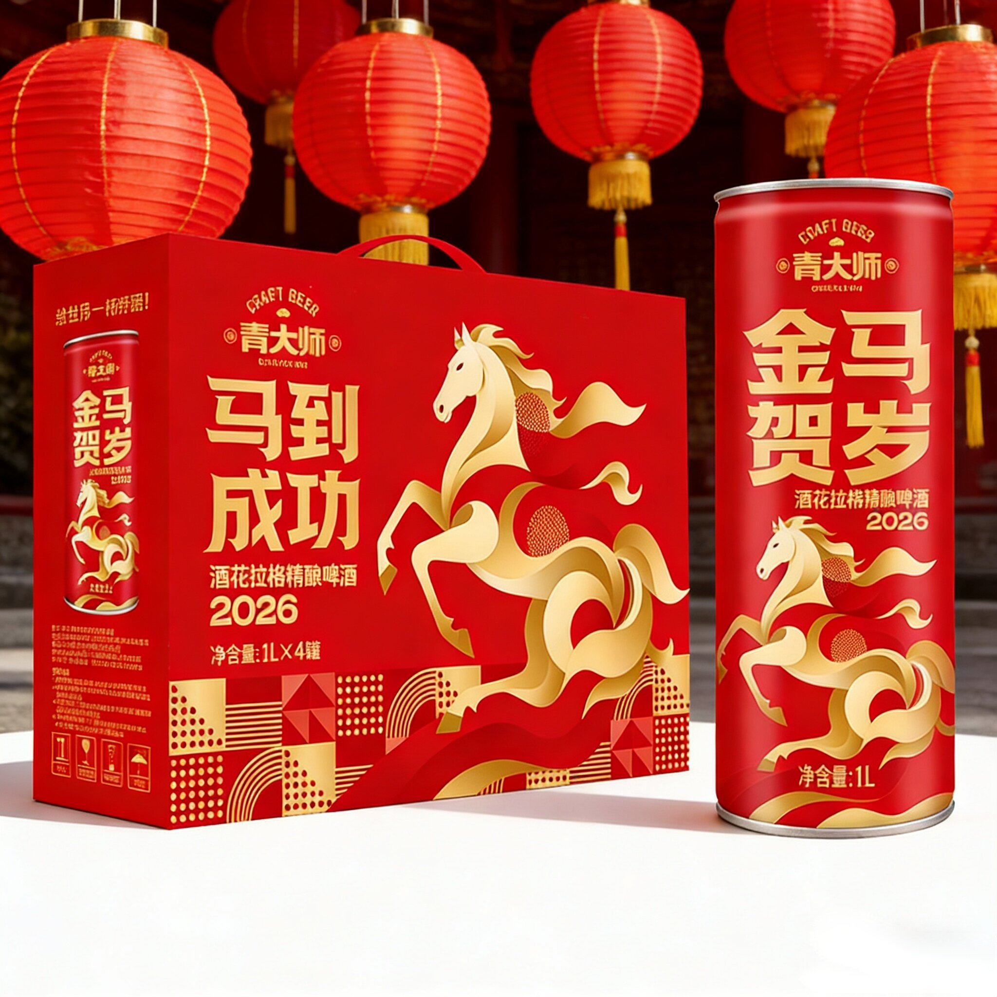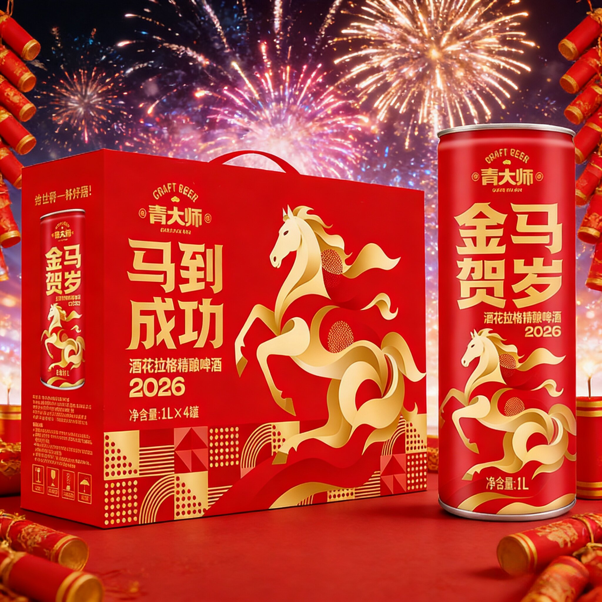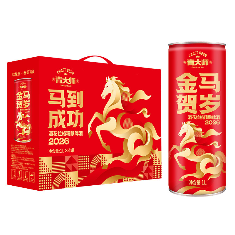 📚 [马年生肖]青岛青大师酒花拉格精酿原浆啤酒礼盒1升桶装 春节送礼