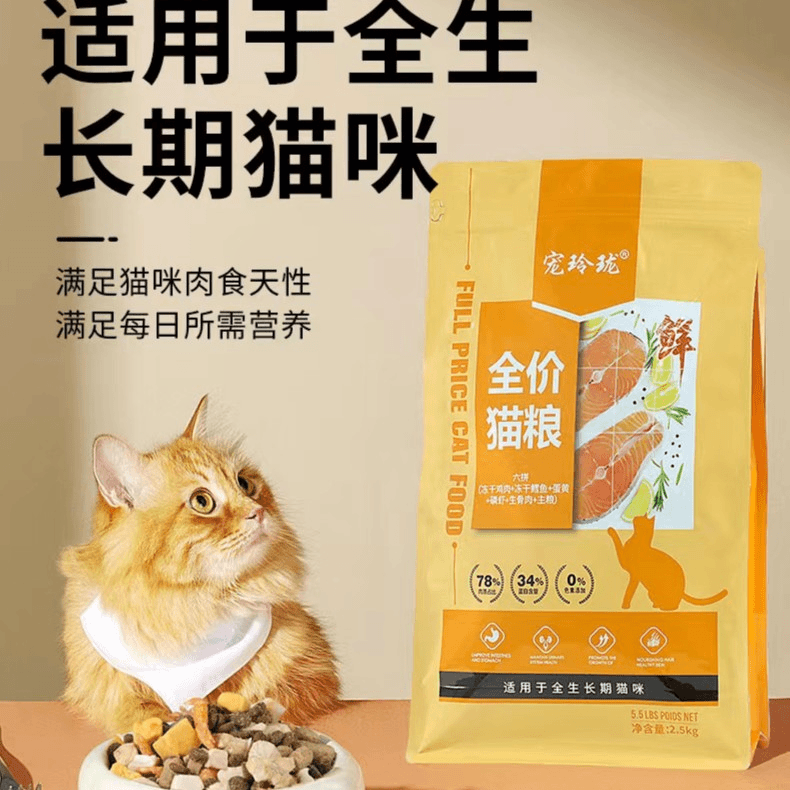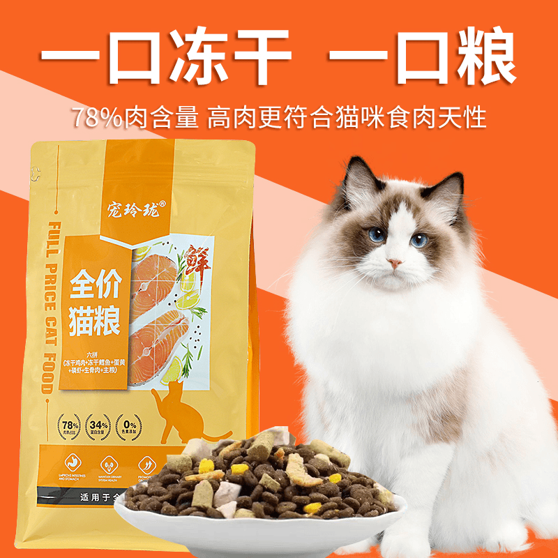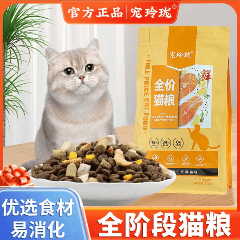 📚 宠玲珑猫粮5斤10斤20斤营养增肥发胖幼猫成猫全价通用冻干猫粮