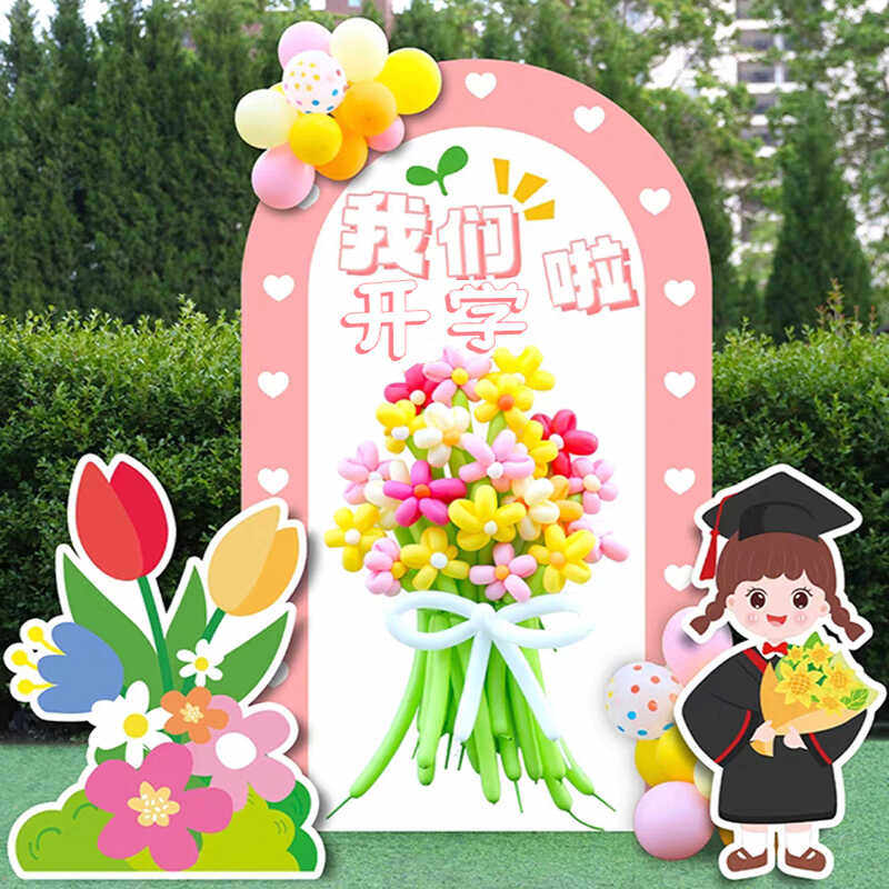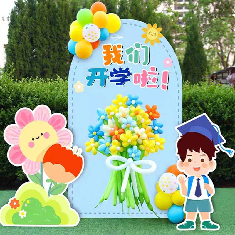 📚 我们开学啦幼儿园教室迎接新生仪式感氛围气球布置背景墙kt板定制
