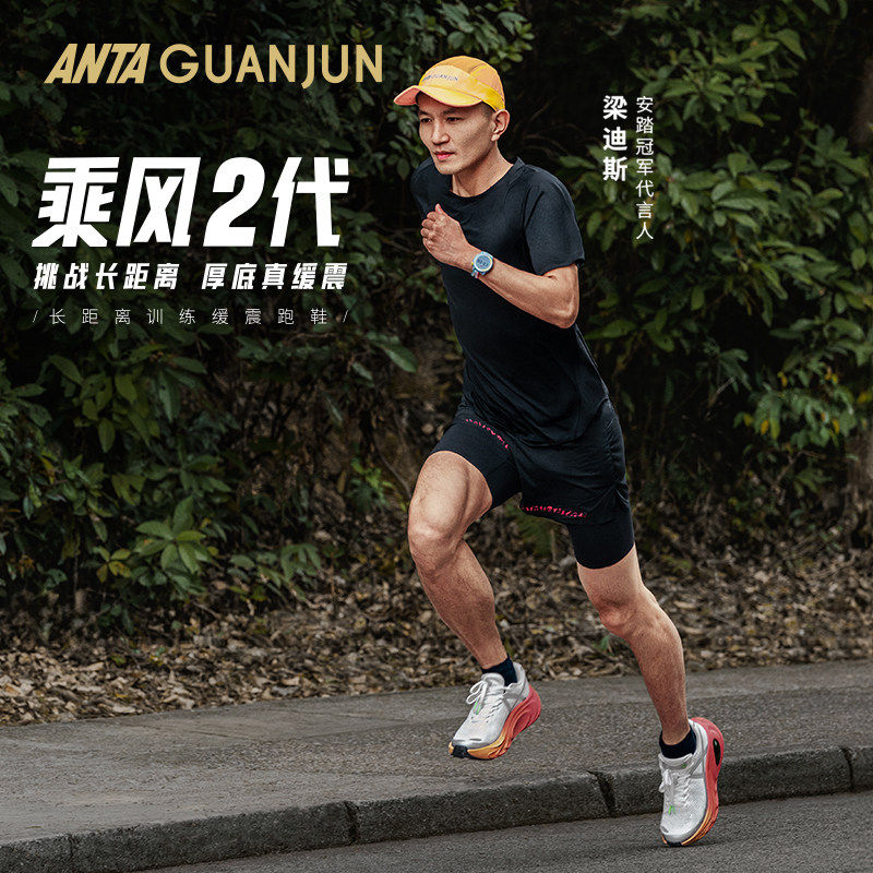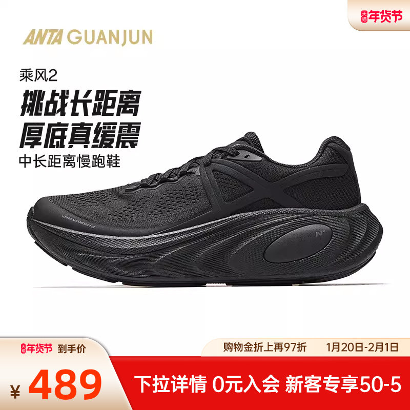 📚 【王一博同款】安踏冠军乘风2代厚底缓震男子黑色跑鞋912615523A