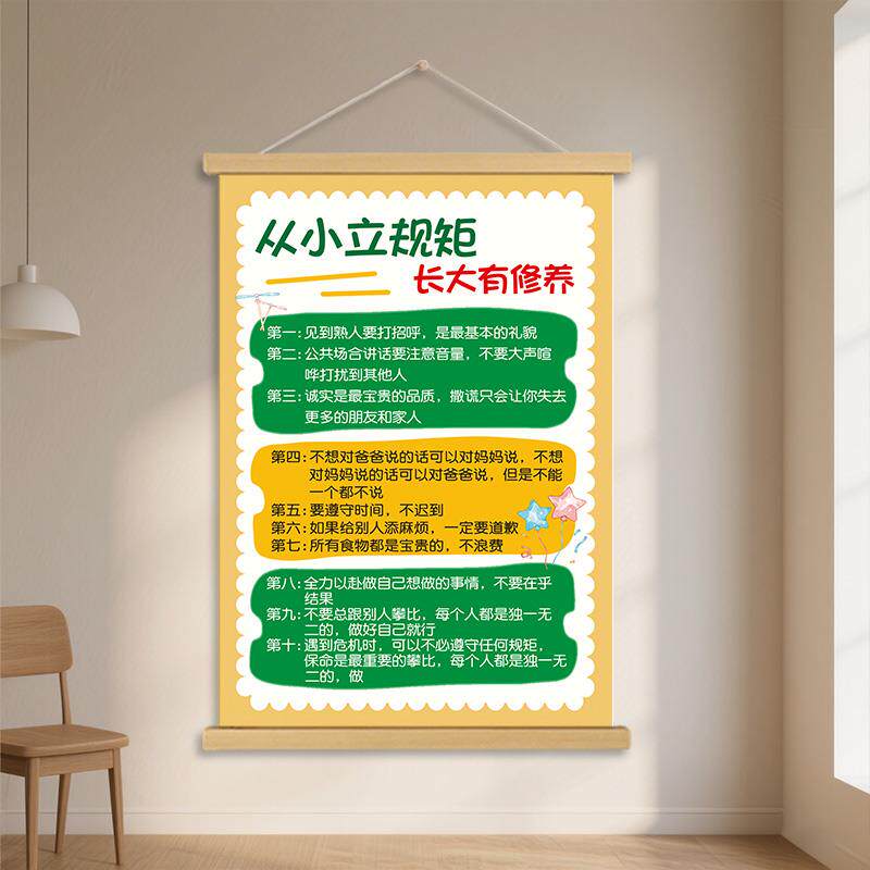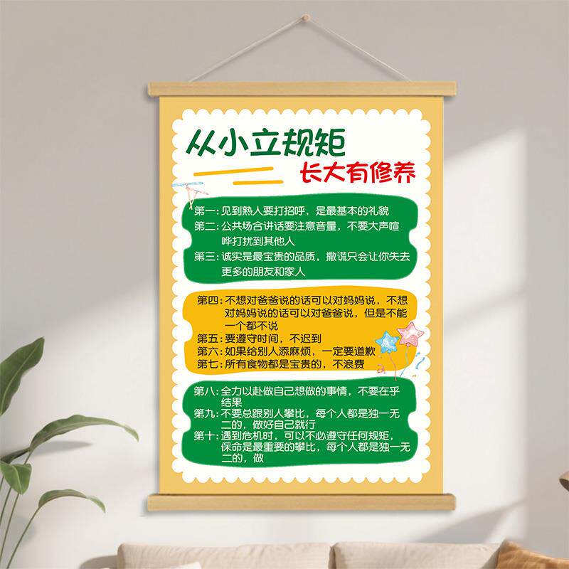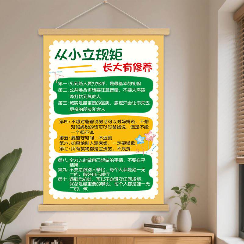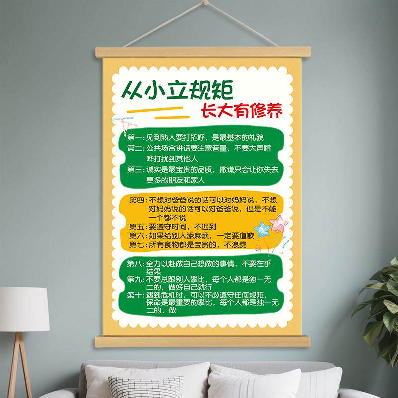 📚 家风家训家规十条挂图立规矩有修养装饰画孩子书房卧室励志挂轴