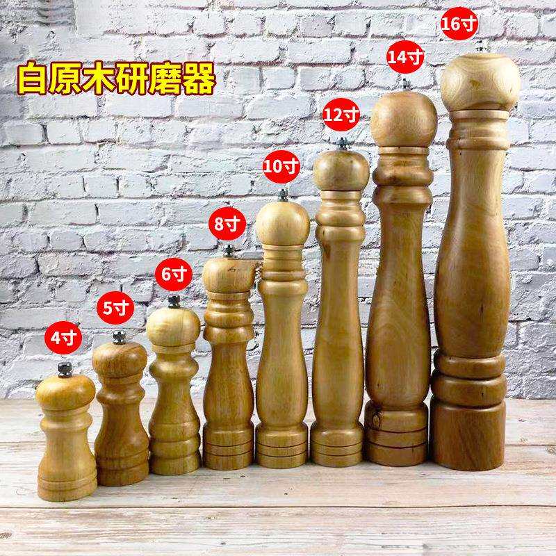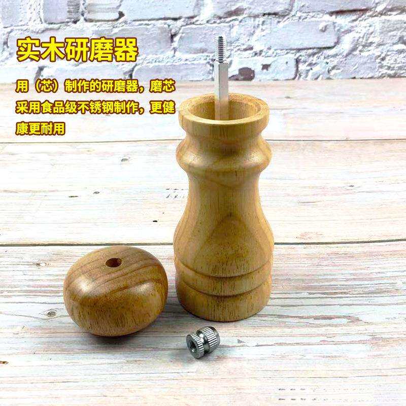 📚 胡椒粉研磨器木质不锈钢芯手动现磨黑芝麻海盐白花椒粒碾磨调料瓶