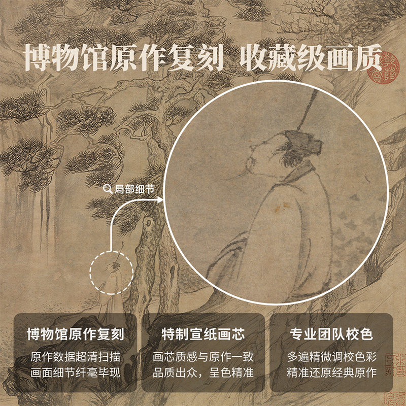 📚 唐寅-空山观瀑图版画客厅装饰画过道玄关挂画山水画客厅壁画