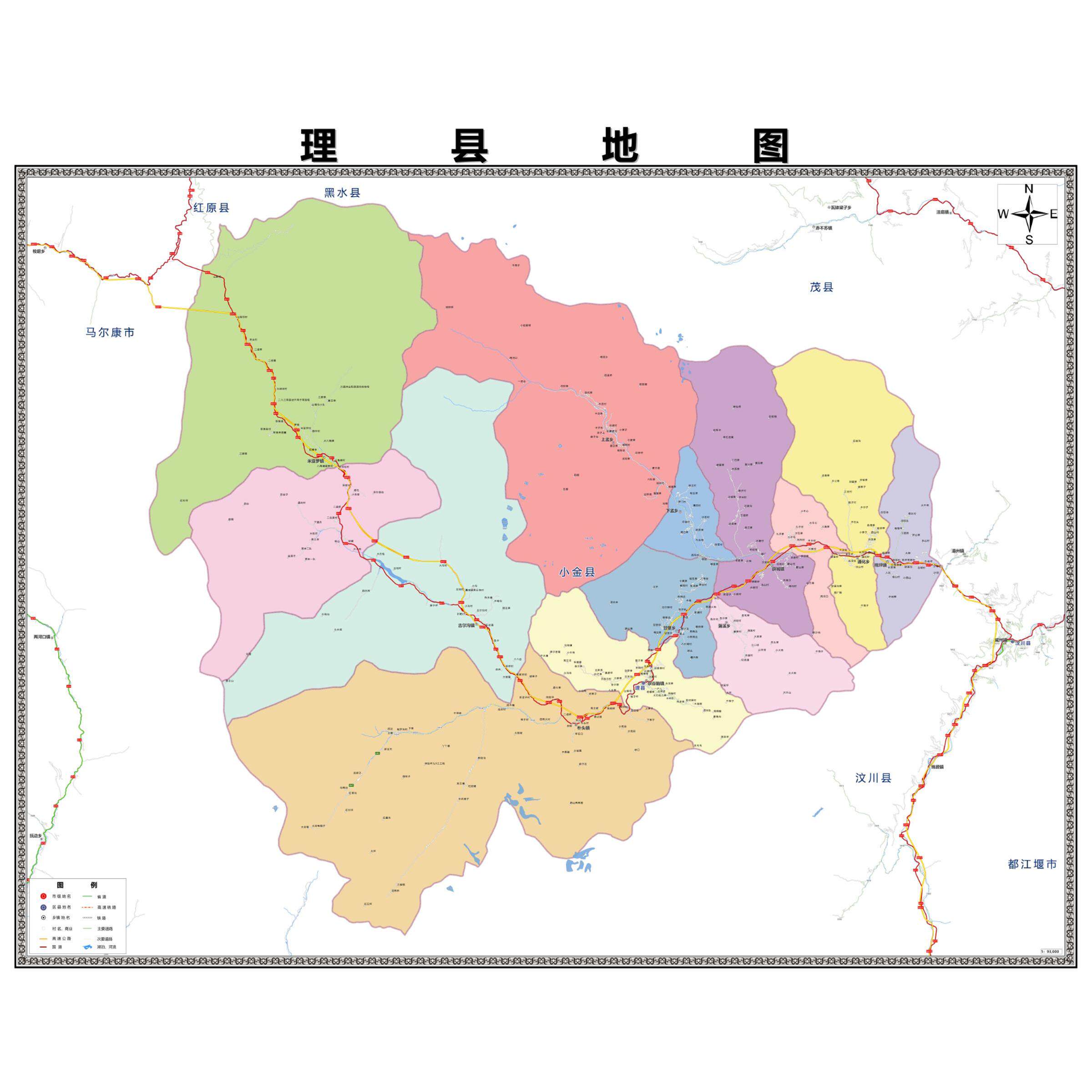 📚 理县区域县市地图街道分布地区区域图办公室贴图挂图
