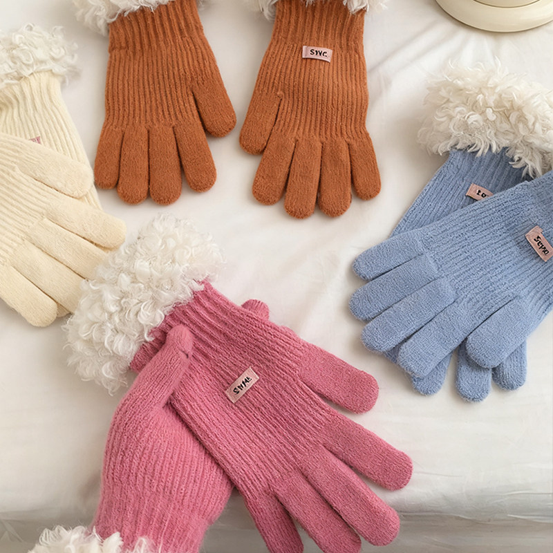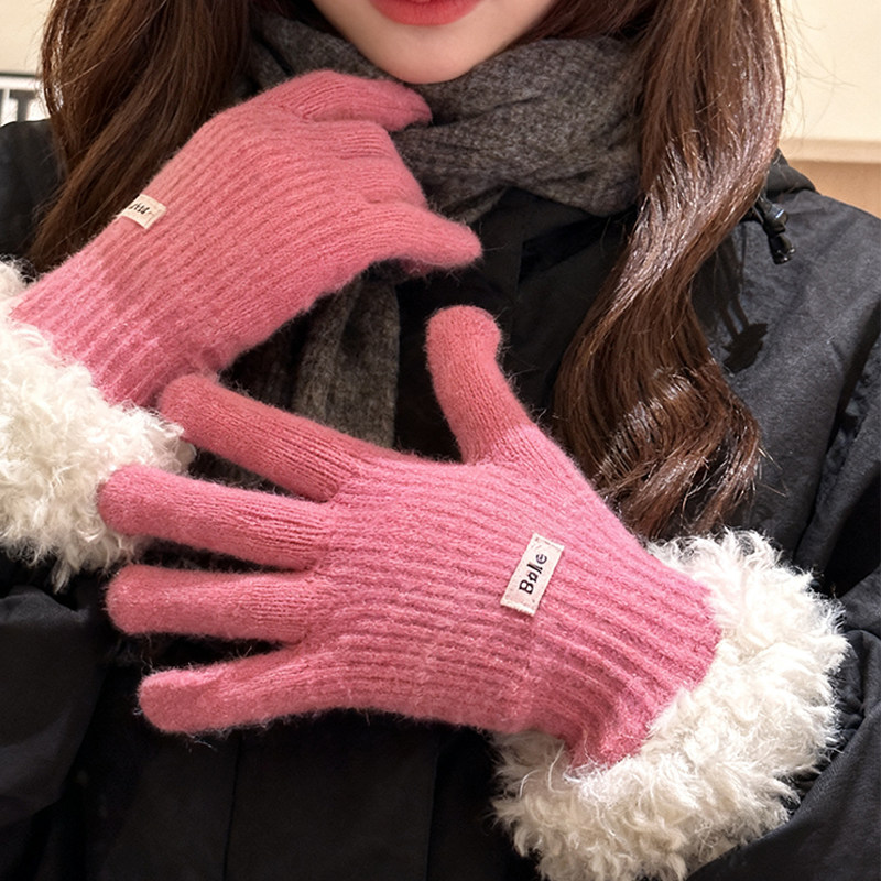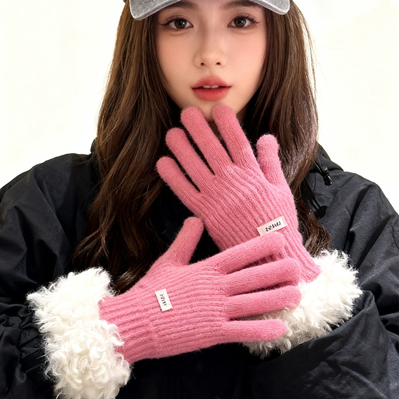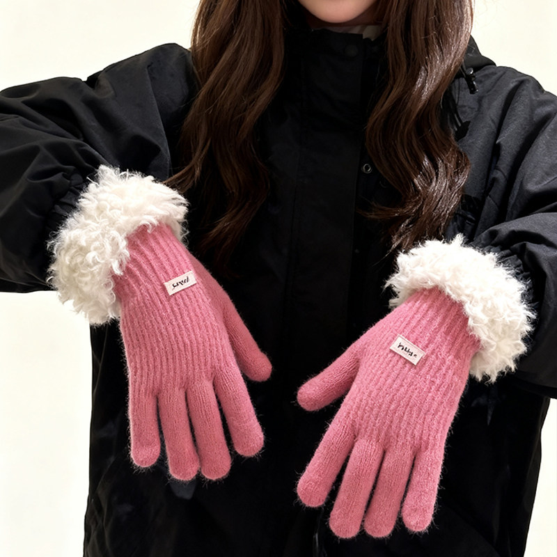 📚 新年毛绒纯色骑行手套女士冬季2026年新款红色针织加绒加厚可触屏