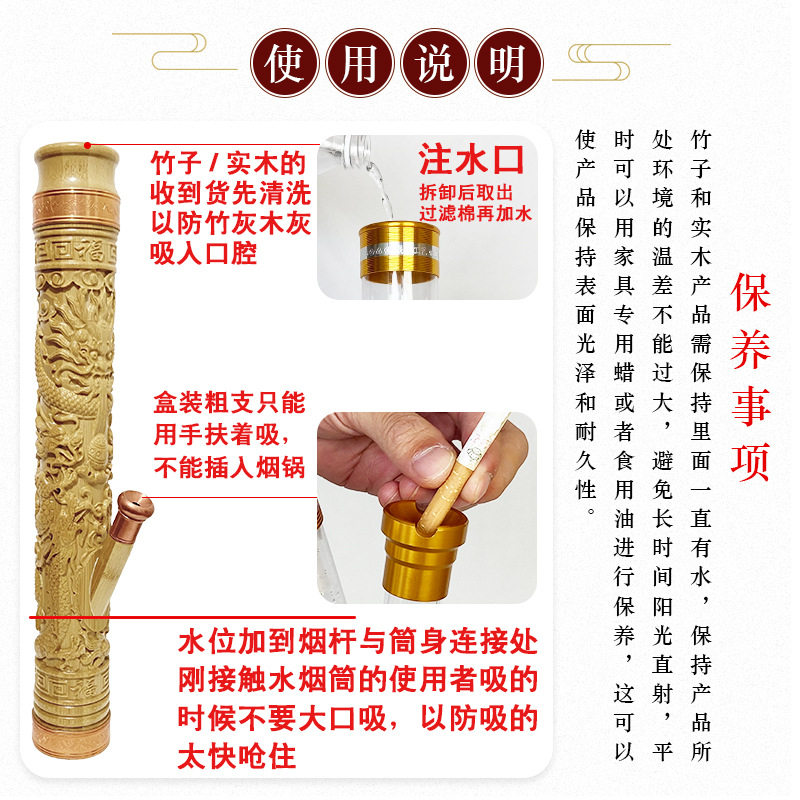 📚 云南雕龙金竹水烟筒水过滤嘴天然纯竹子刻字水烟筒加厚烟桶水烟斗
