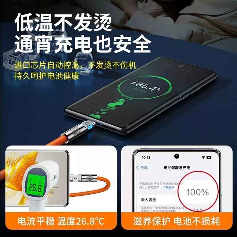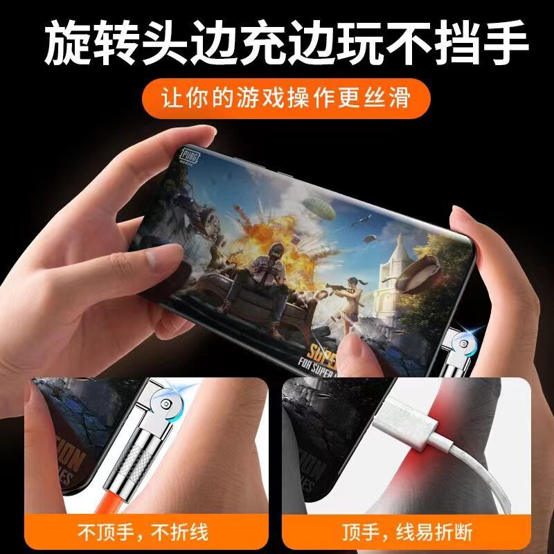 📚 旋转180°弯头typec数据线加长2米3米120W超级快充适用华为OPPO荣耀小米vivo安卓手机充电线加粗usb转Typec