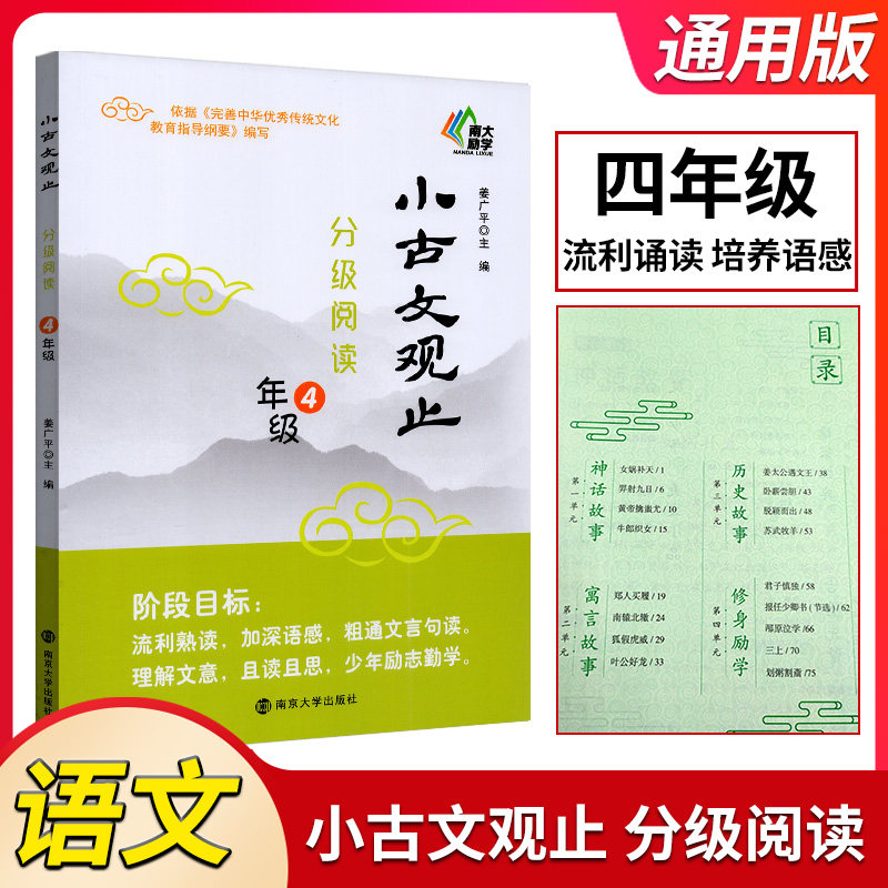 📚 小古文观止分级阅读四/4年级上下册通用版 姜广平/编 阅读文史知识鉴赏课外读物古典文学散文知识欣赏 南京大学出版社