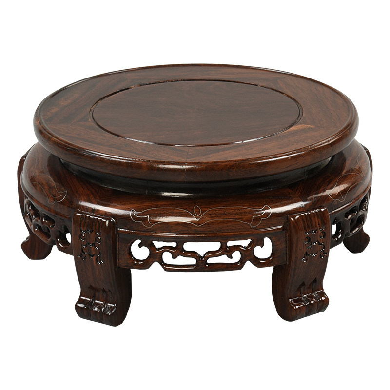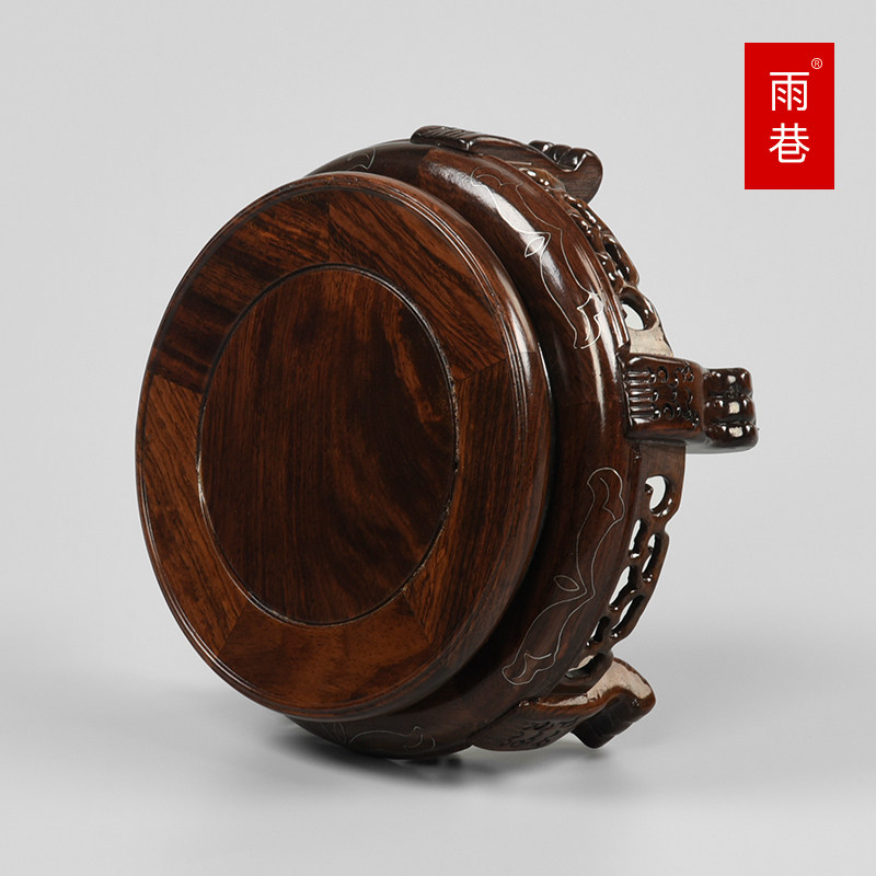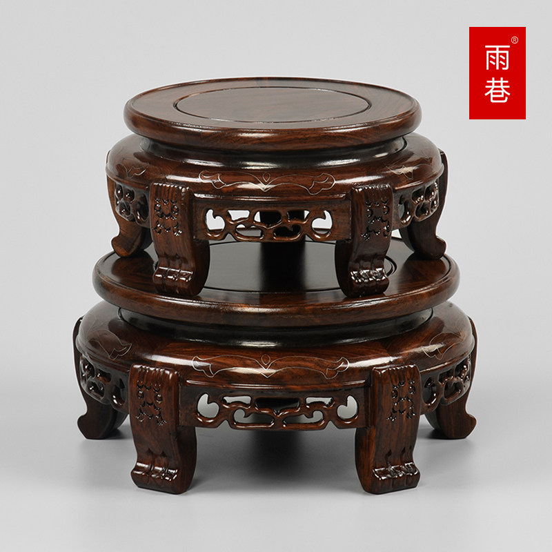 📚 实木圆形摆件花瓶盆奇石头托架子佛像酒坛鱼缸盆景红木工艺品底座