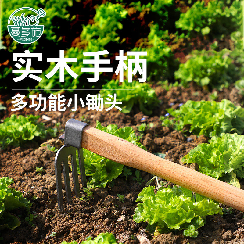 📚 蔓多施户外木柄开荒钢耙钉耙花园种花挖坑锄草工具小锄头家用种菜