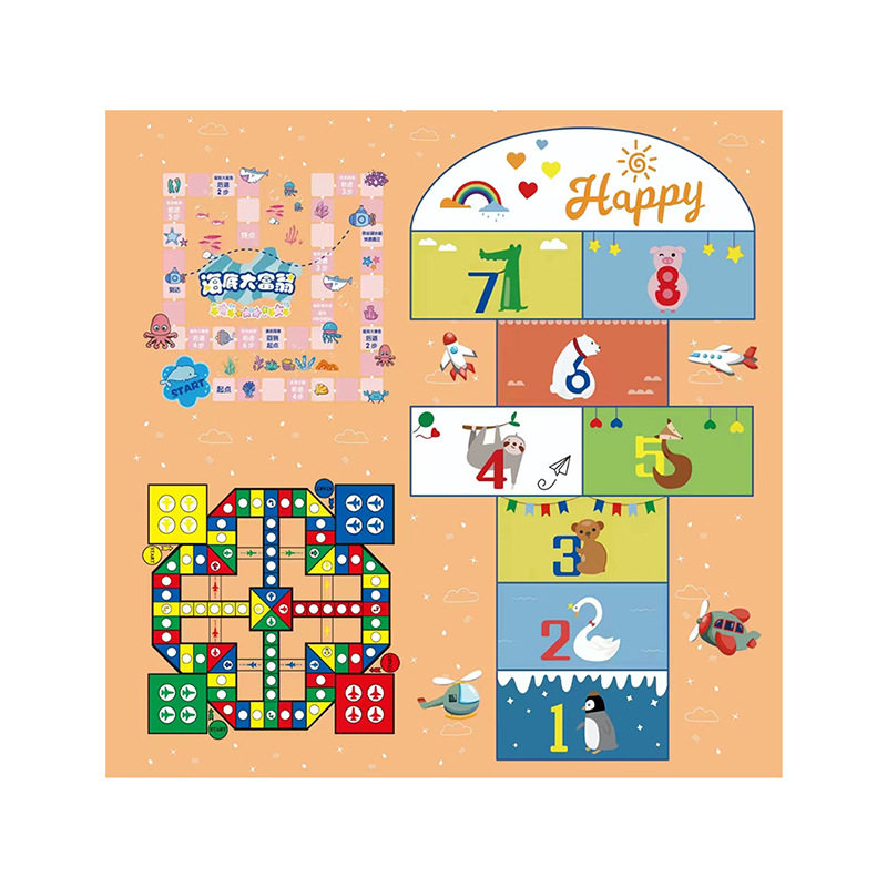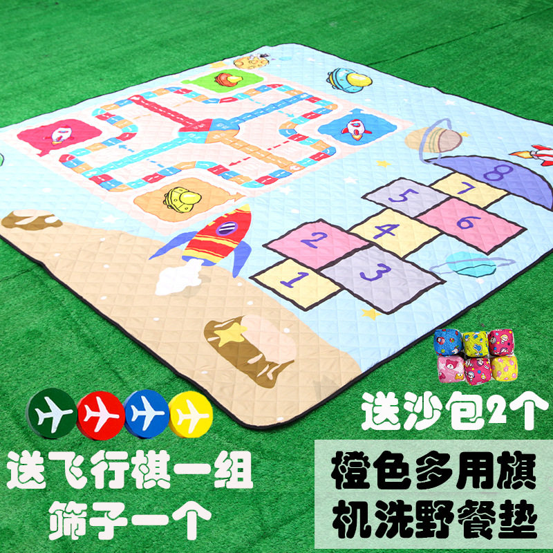 📚 飞行棋超声波三层野餐垫可机洗防潮垫超厚帐篷垫卡通垫紫旅游地垫