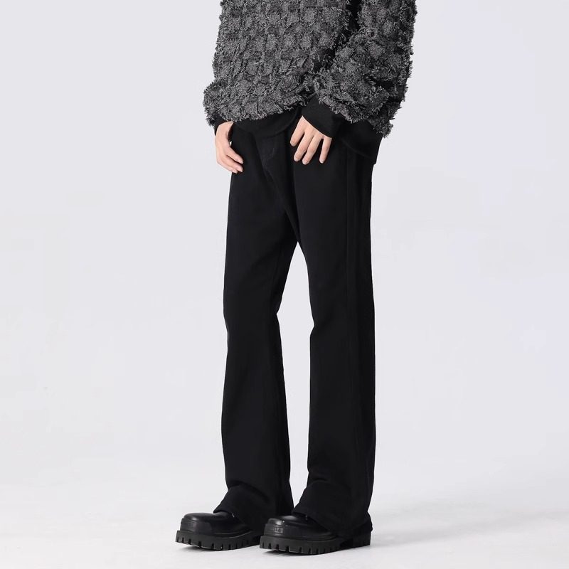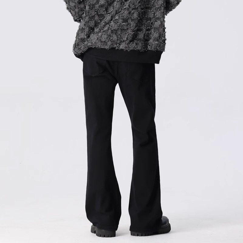 📚 新因素潮流夏薄款弹力微喇牛仔裤男女cleanfit柳叶弯刀黑色西裤子