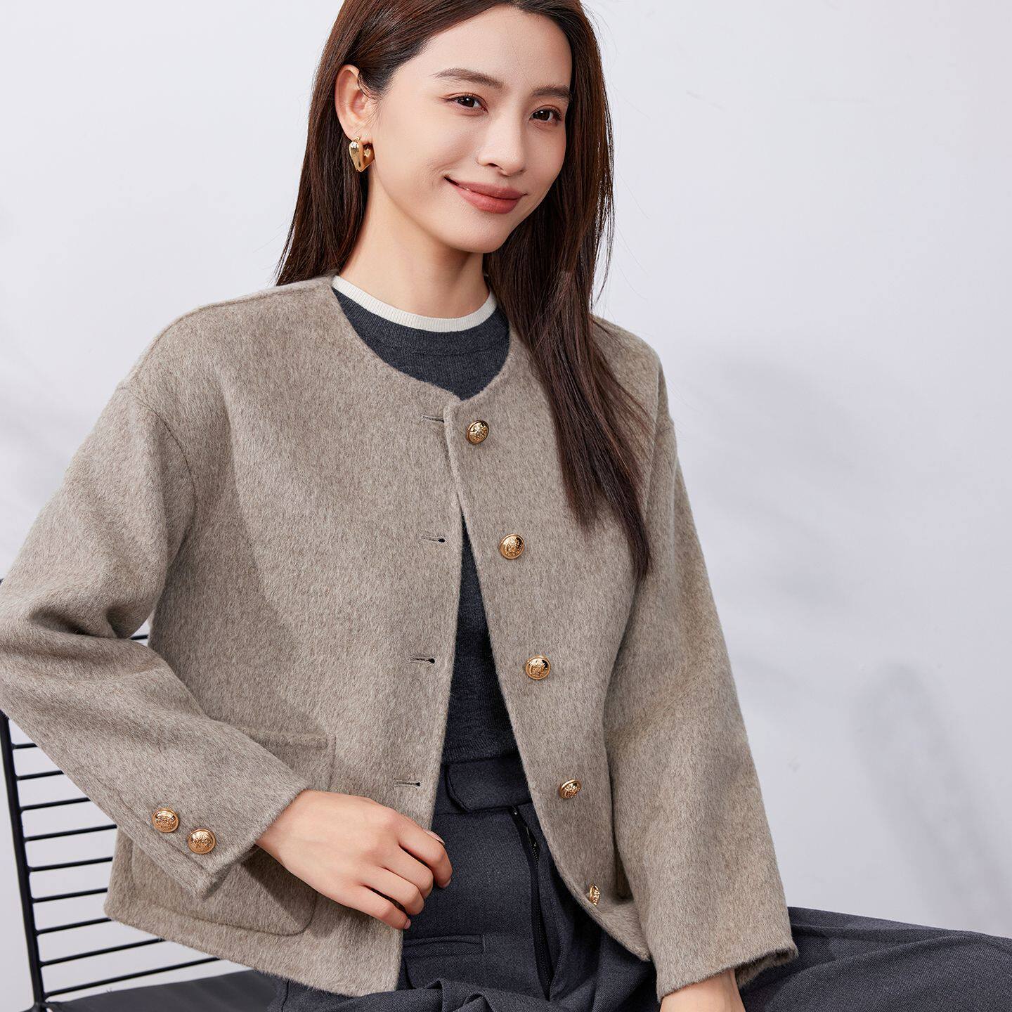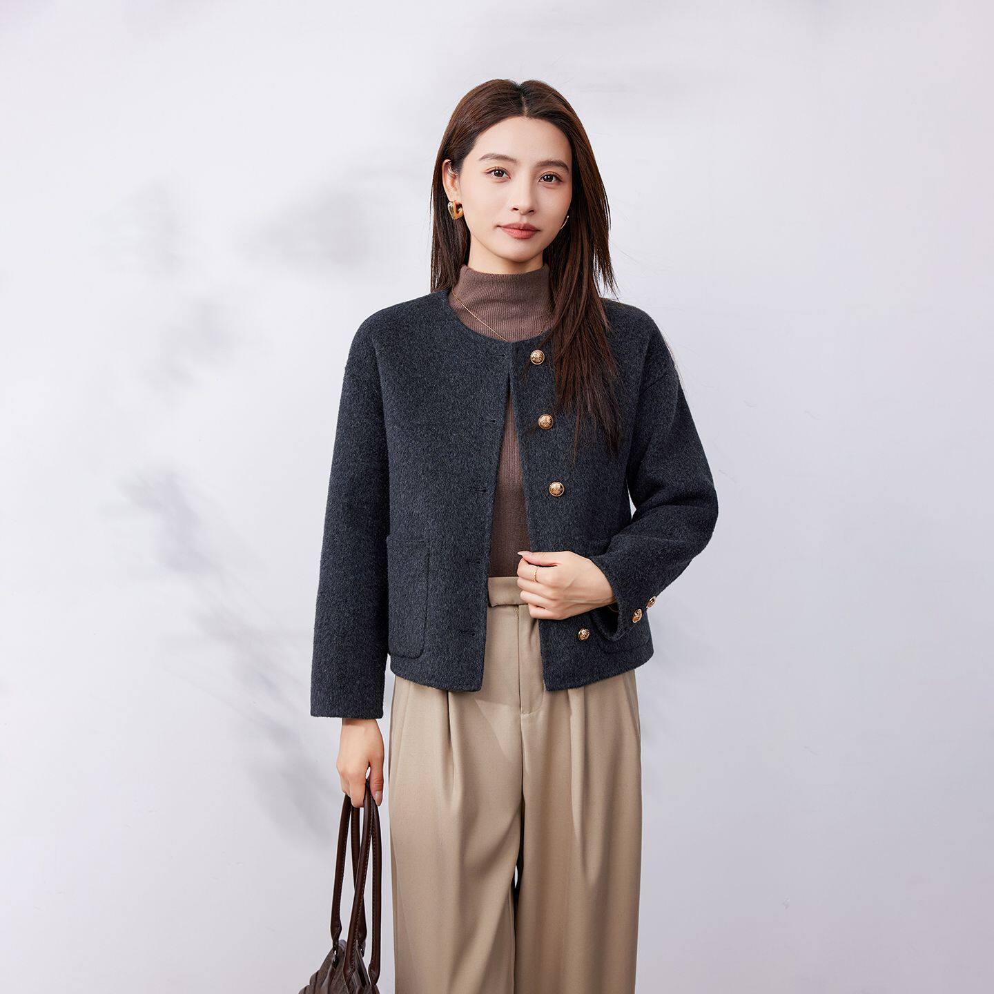 📚 高端双面呢大衣女小个子2025年冬季新款羊毛咖色短款毛呢外套