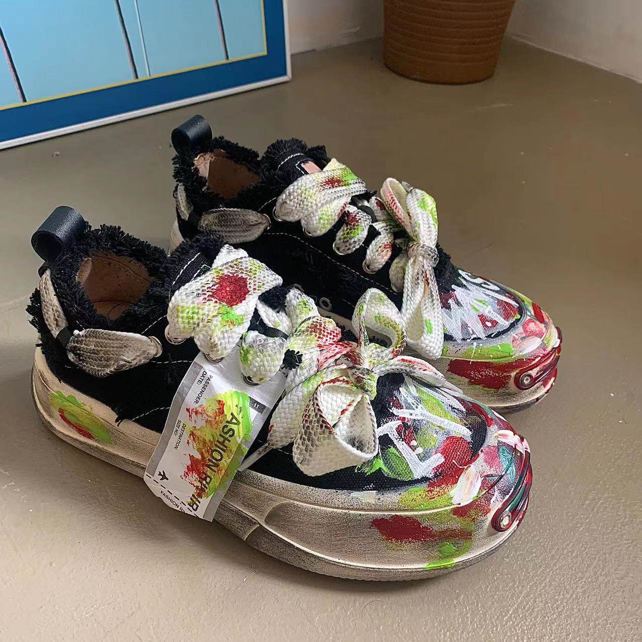 📚 开口笑帆布鞋檀健次同款男女鞋2023春夏季新款厚底增高涂鸦乞丐鞋