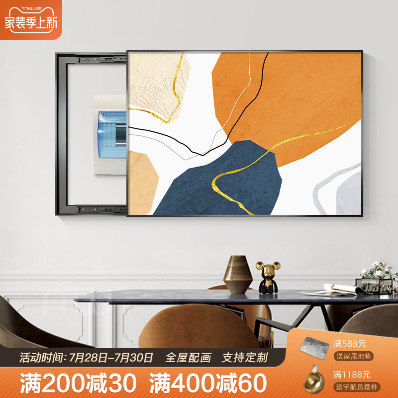 📚 网红抽象电表箱装饰画推拉式现代简约免打孔长方形轻奢电闸盒遮挡