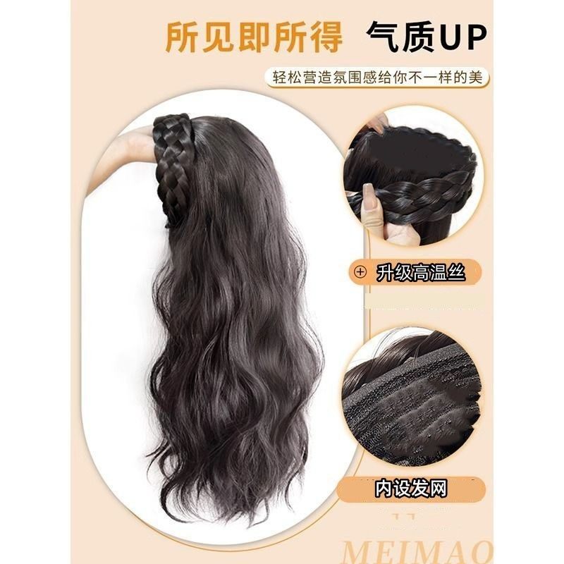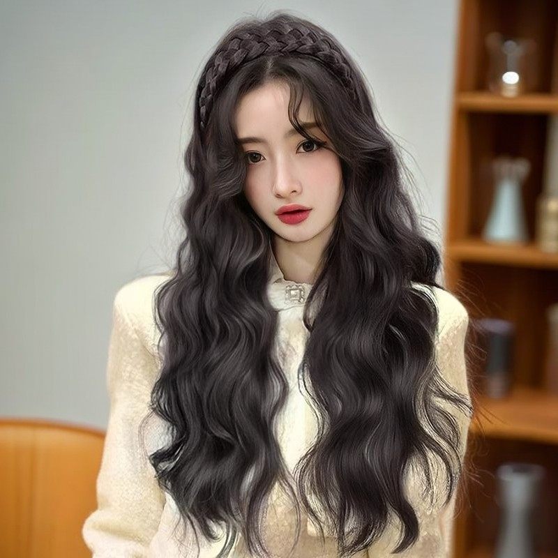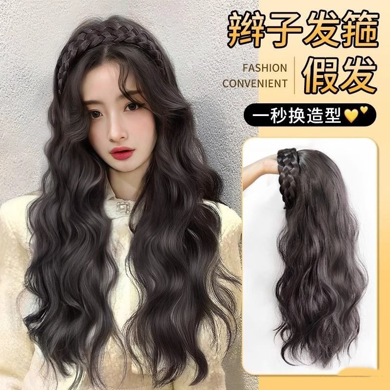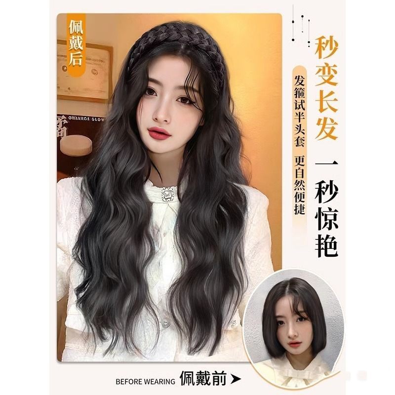 📚 发箍假发女长发一体式水波纹半全头套仿全真人发卷发鱼骨辫假发片