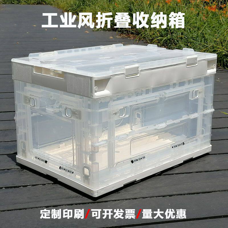📚 可折叠收纳箱透明带盖塑料箱户外开门整理箱工业风家居储物胶箱子
