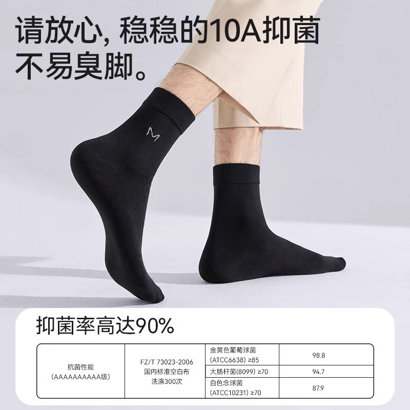 📚 黑色袜子纯棉男款中筒防臭滑雪秋冬季男士运动长袜吸汗抗菌耐磨