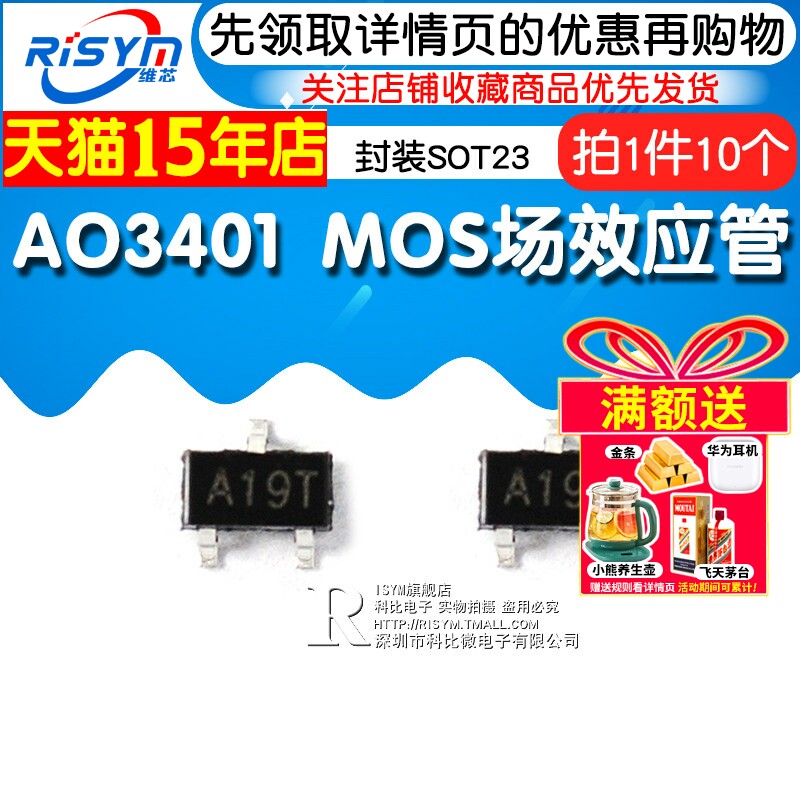 📚 Risym AO3401 SOT23 贴片 MOSFET mos场效应管 10个