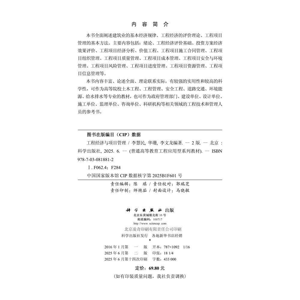 📚 【现货正版】工程经济与项目管理(第二版)李慧民 华珊 李文龙 编著 全面阐述建筑业的基本经济规律工程经济的评价 科学出版社
