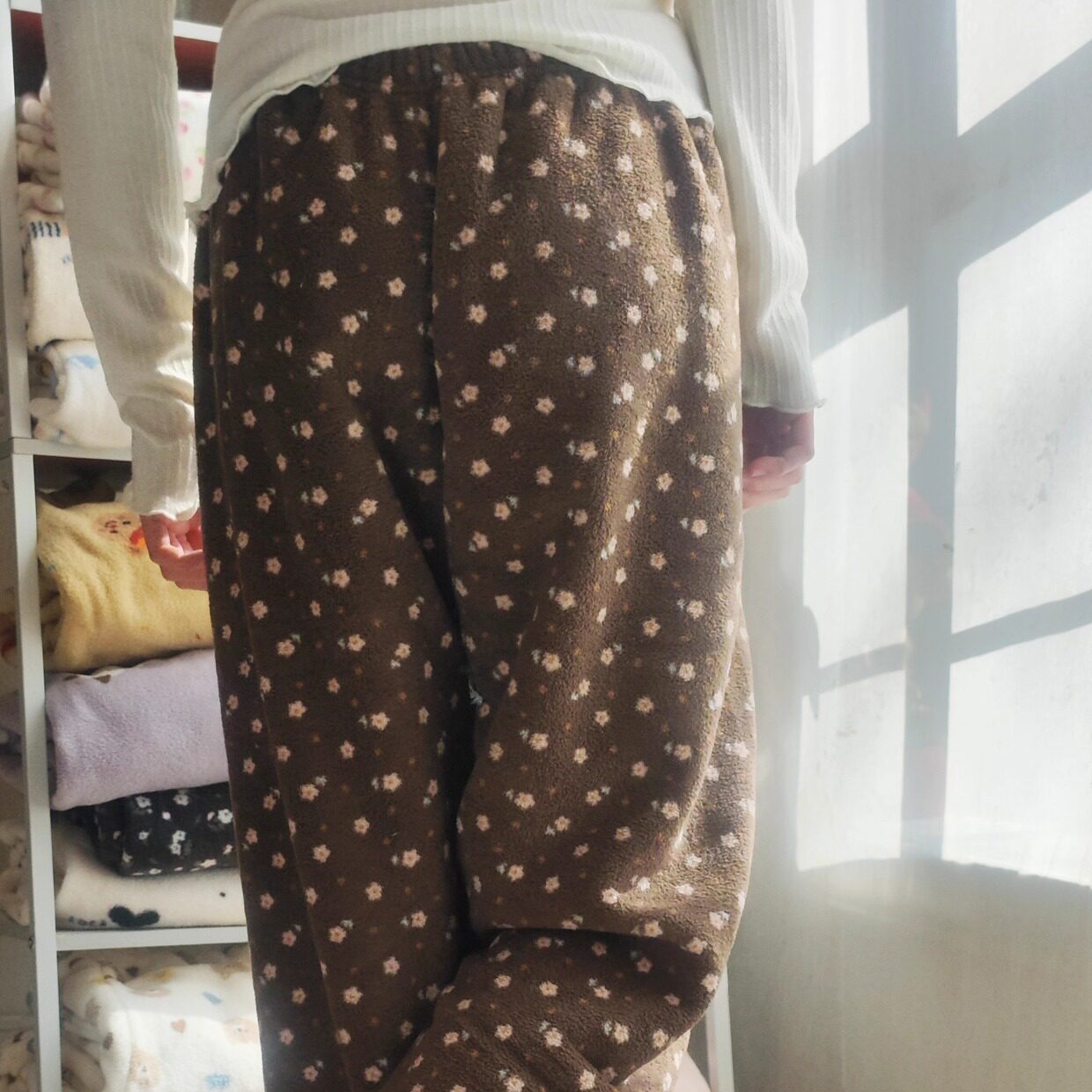 📚 小碎花田园温馨秋冬加厚米粒珊瑚绒女宽松大暖和睡裤休闲家居裤子