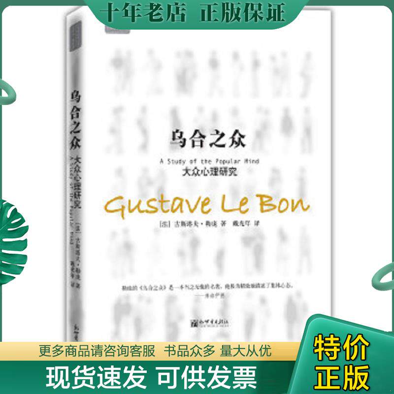 37¥ HU006 r875UOtnTPT¥ https://m.tb.cn/h.7wdoz42 正版现货9787510407550 乌合之众 大众心理研究 (法)古斯塔夫·勒庞 著,戴光年 译 新世界出版社 --------------------- 【原售价】21.3元 【现售价】21.3元。