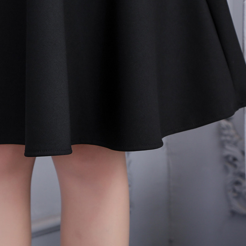 📚 半身裙中长款女春秋褶裙新款韩版高腰口袋百搭黑色伞裙防走光