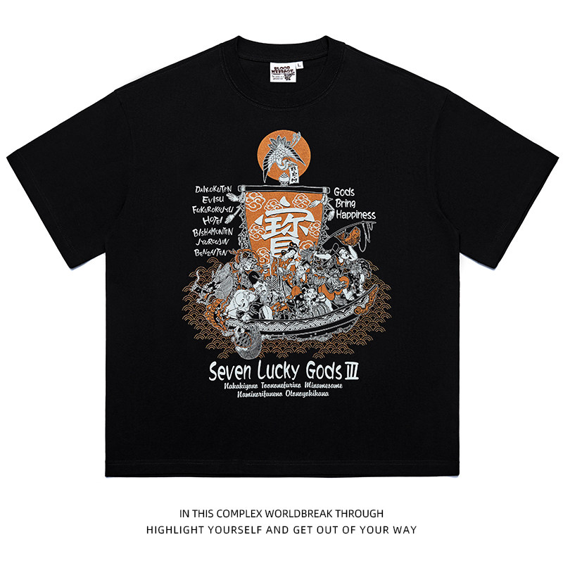 📚 潮牌七福神宽松日系短袖T恤男款浮世绘透气夏季新款2026印花上衣