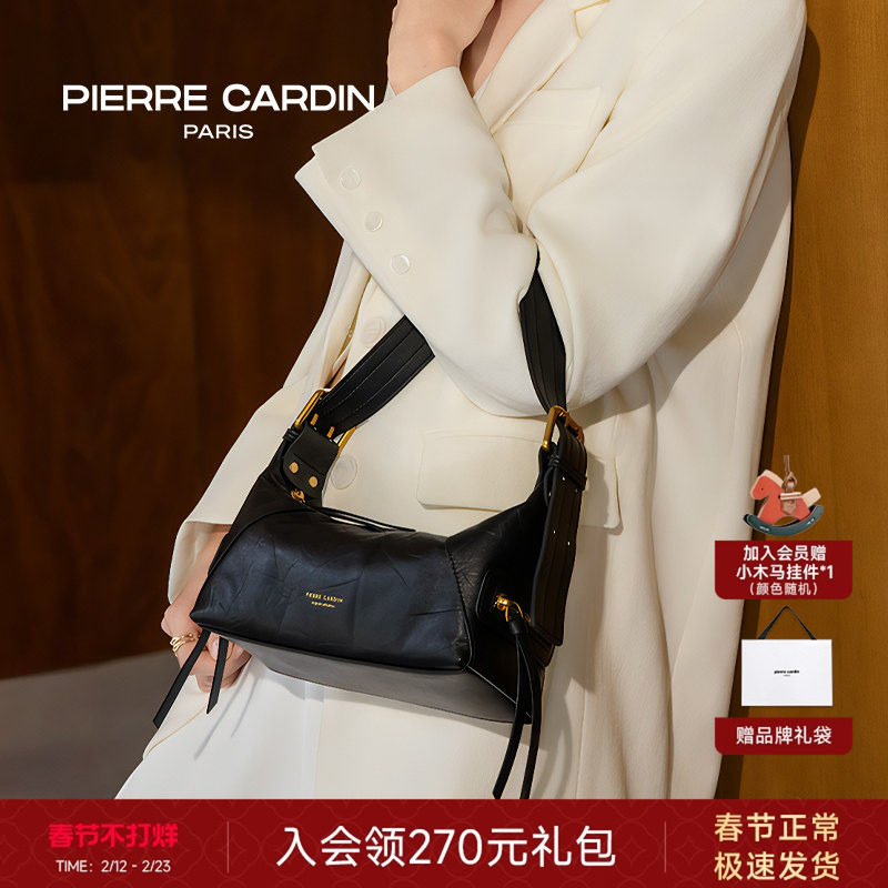 📚 皮尔卡丹官方真皮手抓纹腋下包头层牛皮枕头包酷飒手提单肩包礼物