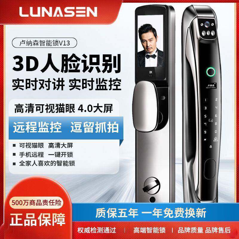 📚 hu卢纳森人脸别全自动监智能指识纹门锁纹HJG家用防盗门电子y控密