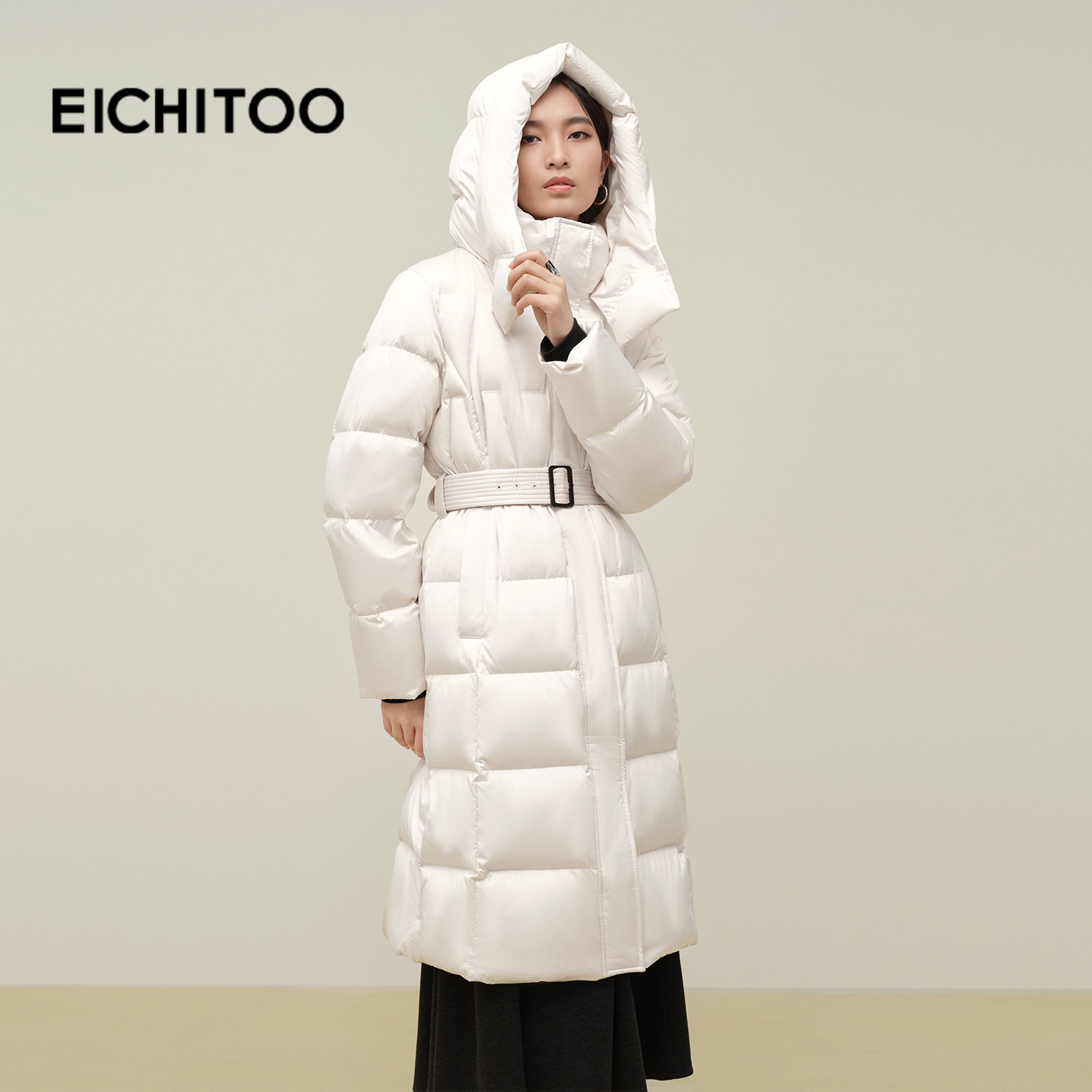 📚 爱居兔长款收腰羽绒服女2025年冬季新款含腰带显瘦保暖连帽外套