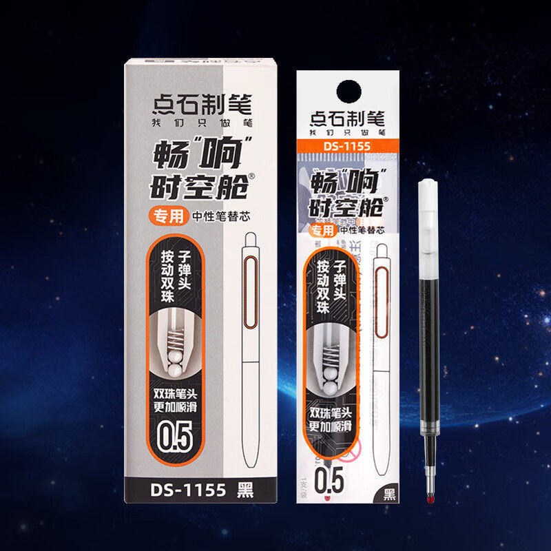 📚 点石时空舱笔芯DS-1155原装双珠子弹头按动替芯极光畅响太空舱笔黑色0.5中性笔芯学生专用0152顺滑速干水笔芯
