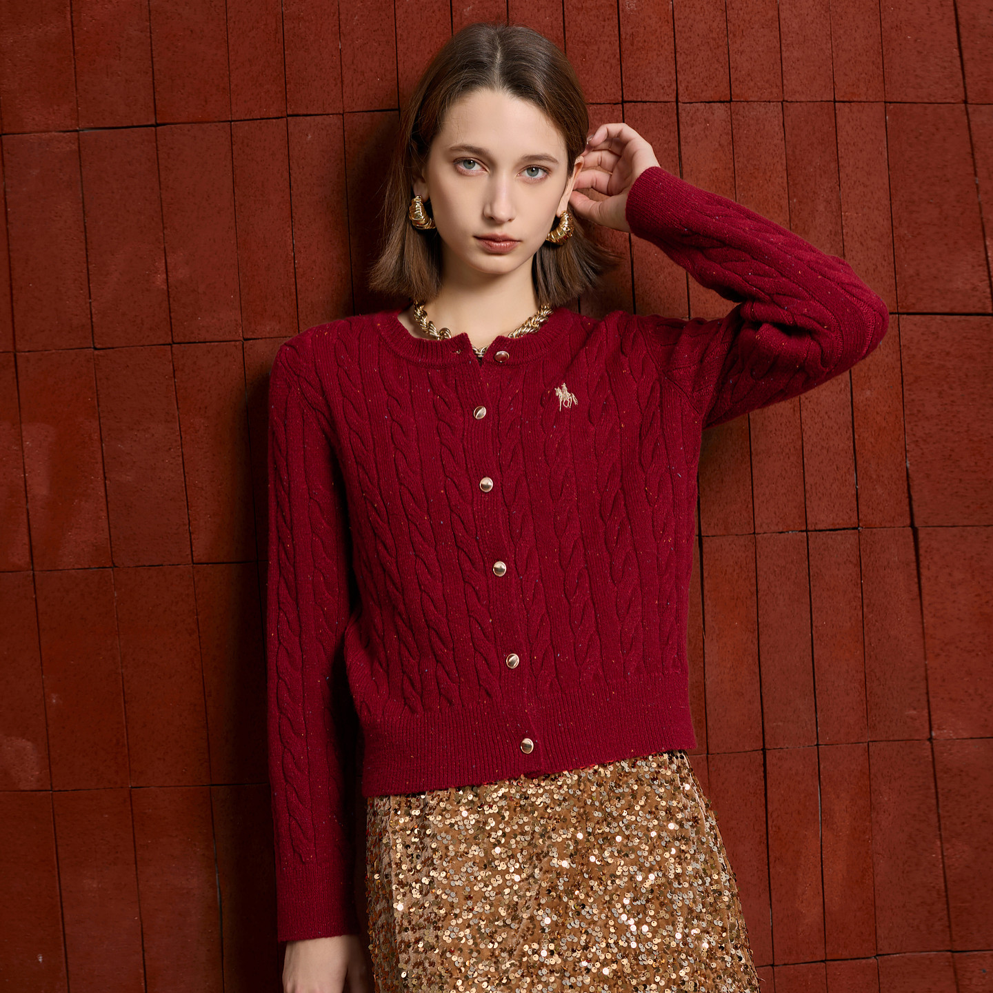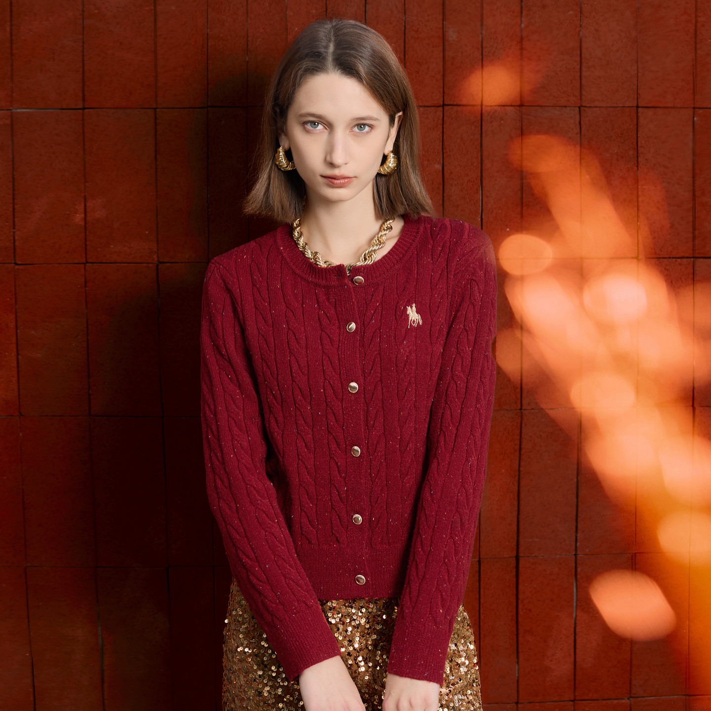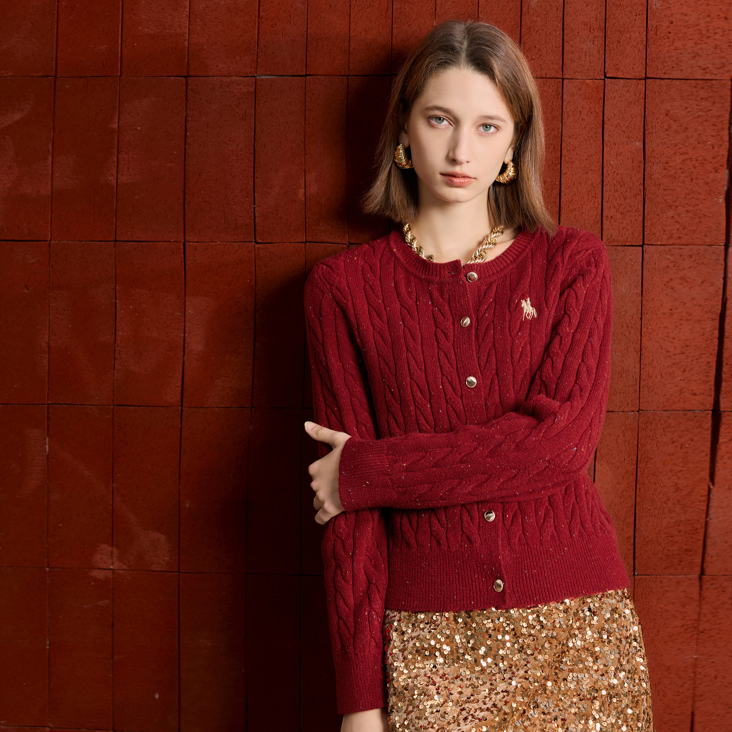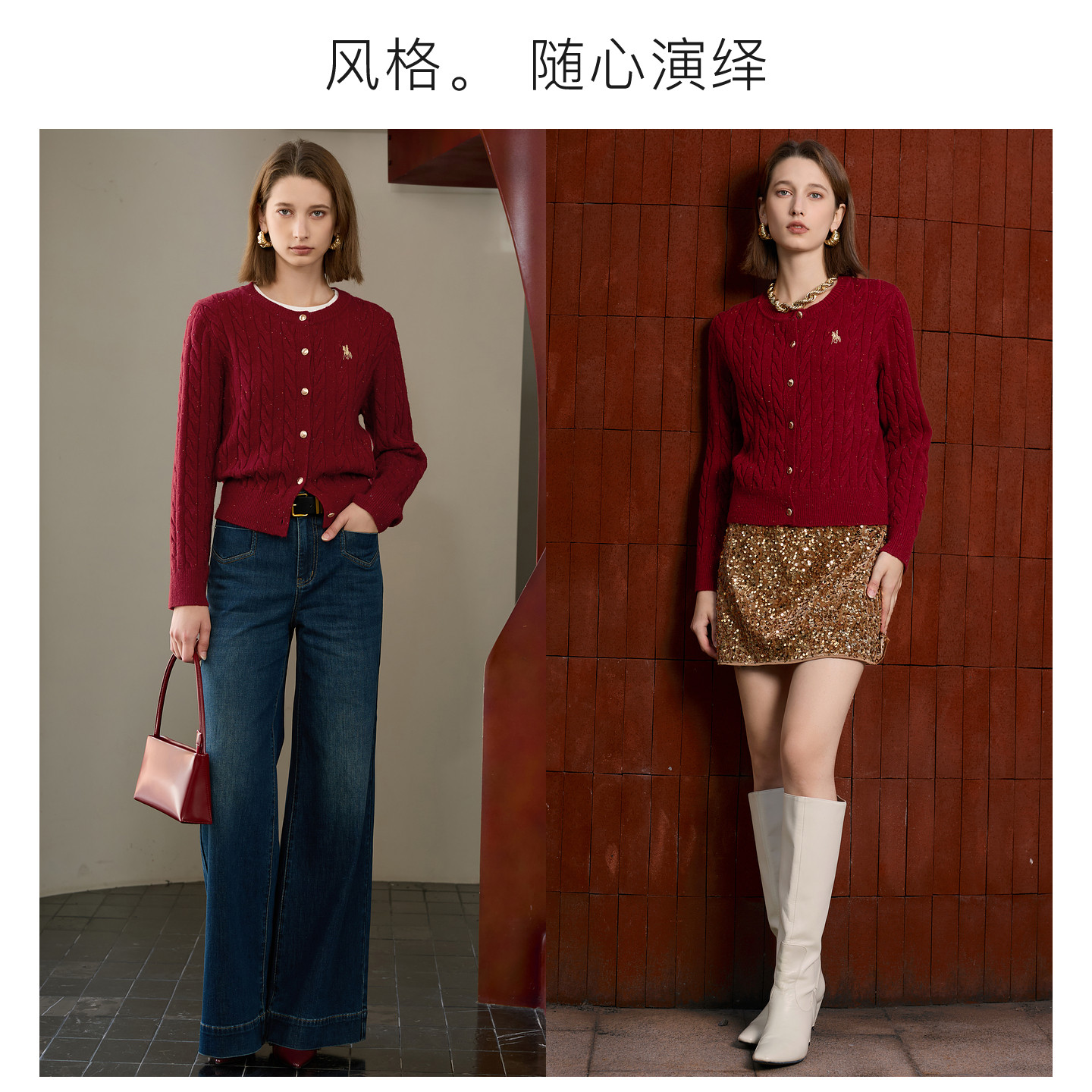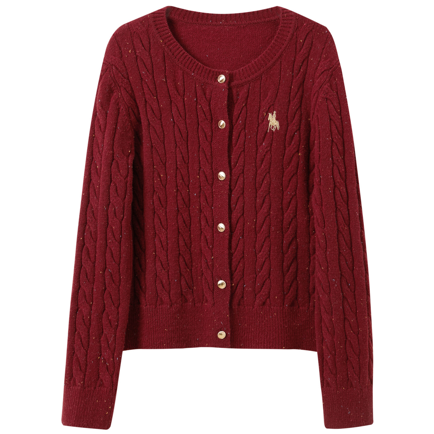 📚 丽雪leisure2025冬季新款绞花刺绣针织衫长袖圆领开衫外套女