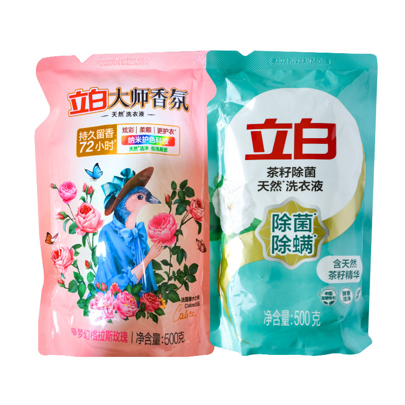 📚 立白大师香氛天然洗衣液格拉斯玫瑰补充装袋装茶籽除菌除螨500g克