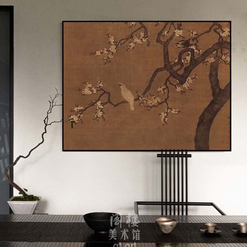 📚 杏花双雉图 新中式中古艺术小众装饰画书房茶楼酒店民宿背景挂画
